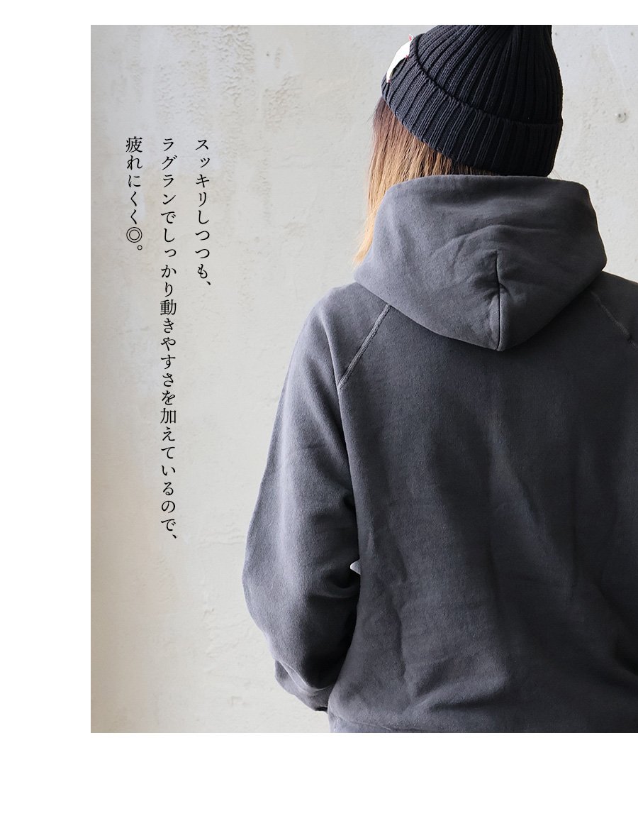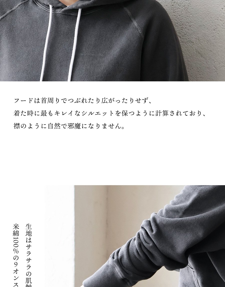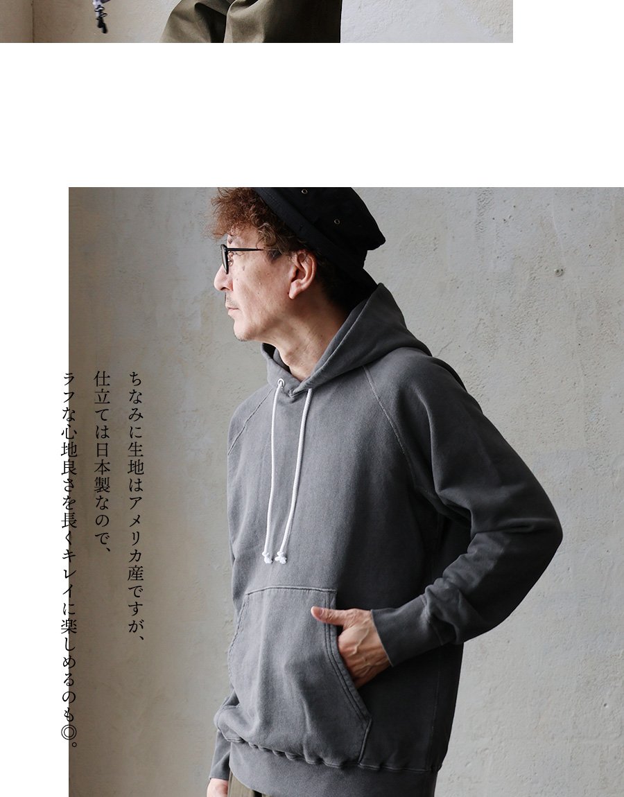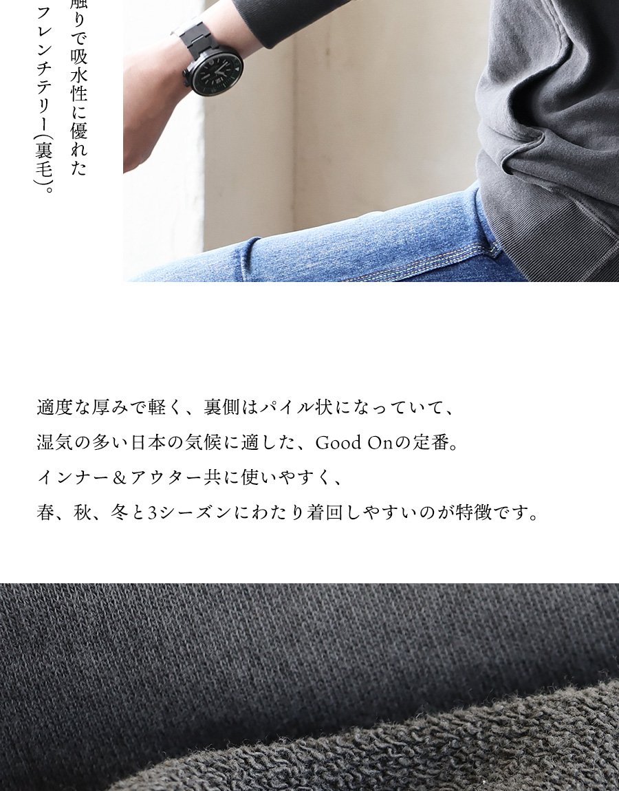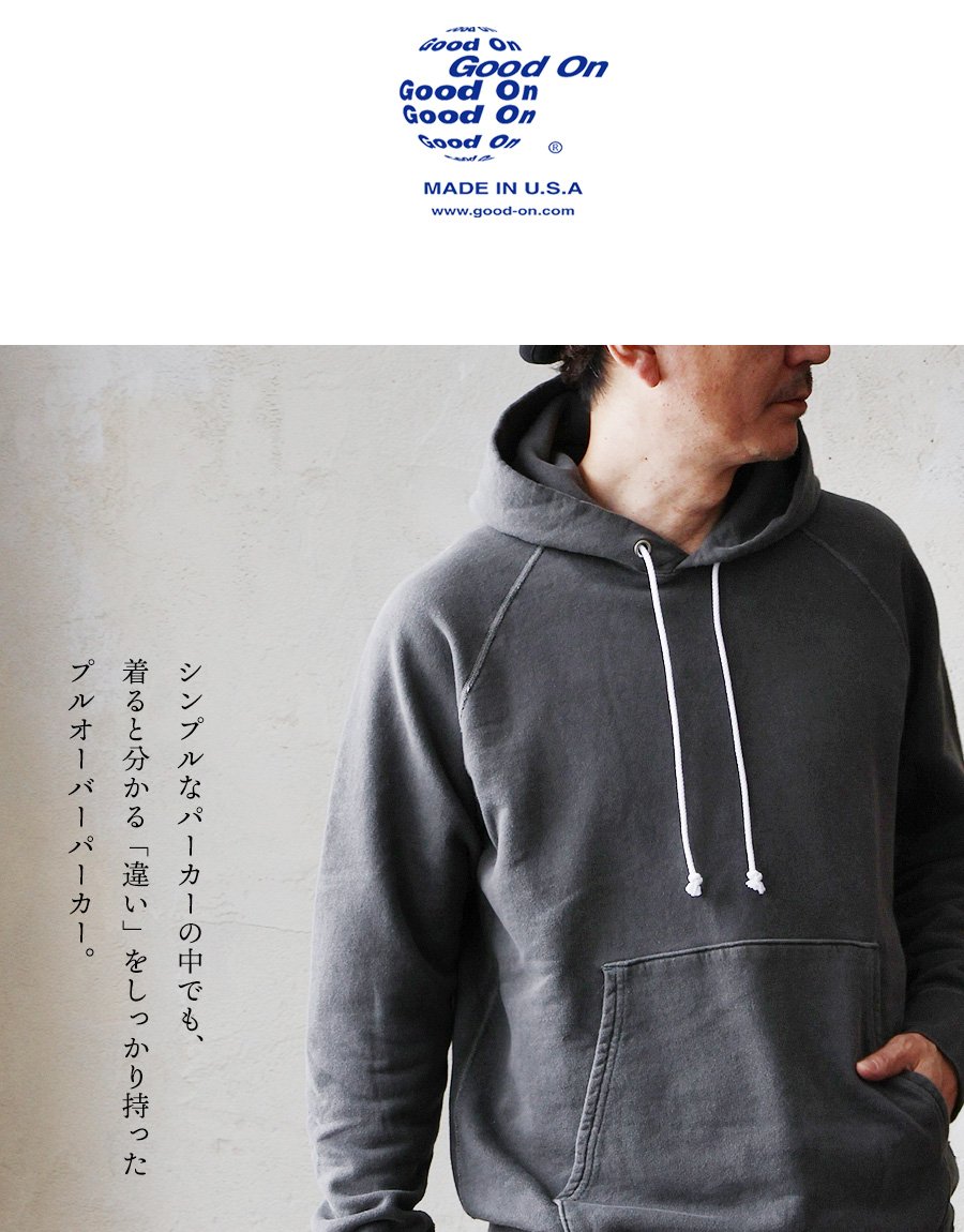 春・秋・冬。さらっと心地良い「定番」。 Good On グッドオン パーカー プルオーバー メンズ レディース 日本製 ラグラン 米綿 綿100 裏パイル 裏毛 フレンチテリー スウェット ピグメント加工 カジュアル 無地 アメカジ パティ