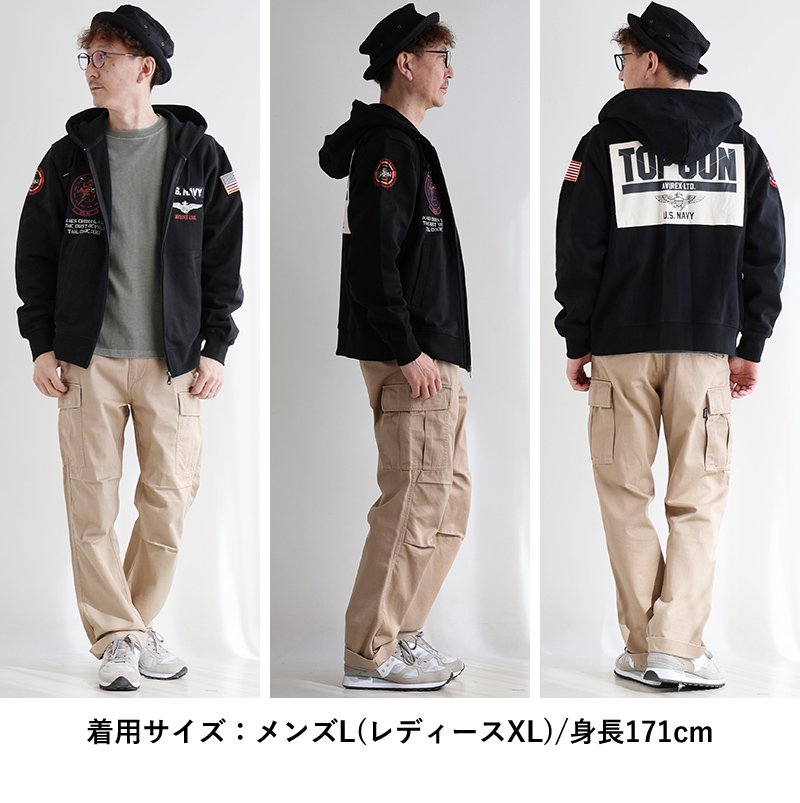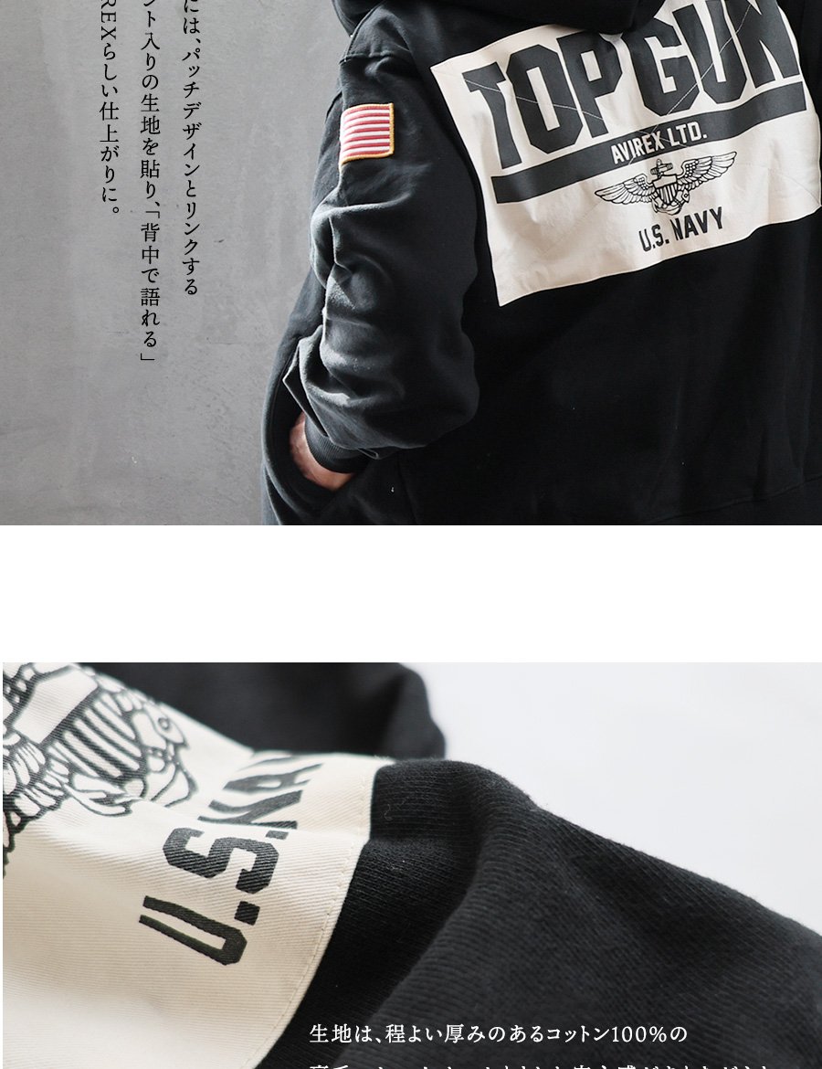 実在部隊の誇りを、日常に。 AVIREX アビレックス パーカー 長袖 メンズ レディース 綿100 コットン 裏毛 ワッペン ロゴプリント ダブルジップ 大きいサイズ 体型カバー カジュアル ミリタリー パティ