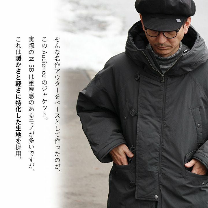 他の画像を見る 暖かさと軽さに特化した『疑似ダウン』。 N-3B ジャケット メンズ レディース ハイネック 無地 ソロナ 高機能 中綿 暖かい軽い 裏地付き ポケット ゆったり 大きいサイズ 体型カバー カジュアル ミリタリー ヴィンテージ 秋 冬 パティ Audience オーディエンス 2~3日でお届け 販売価格 ¥ 26,400 税込 在庫切れ カートに入れる お気に入りに登録する