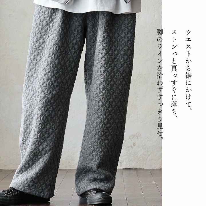 他の画像を見る 品よく、気楽に穿く、無理しないスマート感。 パンツ ストレート イージー ワイド メンズ レディース 日本製 コットンキルト 薄中綿 暖かい 軽い 伸縮性 ウエストゴム ゆったり 大きいサイズ カジュアル 秋 冬 パティ Audience オーディエンス 2~3日でお届け 定価 ¥ 17,380 のところ 販売価格 ¥ 12,222 税込 カートに入れる お気に入りに登録する