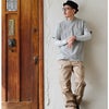 【モデルコメント】中は、カットソー2枚くらいは合わせやすそうなゆとりがあります。しっかりとゆとりを持って着れました。 【客観的コメント】お尻はすっぽりと隠れる着丈の長さです。ゆとりを持って着たいなら、選んでも良さそうなサイジングですね。