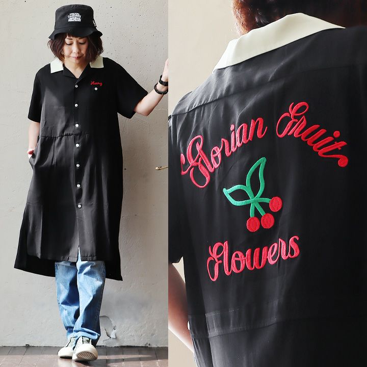 メンズものこそ、女性らしさをグッと引き出してくれる。 ワンピース シャツワンピ ボウリングシャツ テンセルシャツ 半袖 レディース 刺繍 配色切り替え 薄手 軽い 涼しい レーヨン ゆったり 体型カバー 大きいサイズ カジュアル メンズライク 夏 パティ HOUSTON ヒューストン