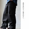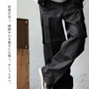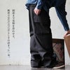 【モデルコメント】ウエストで穿きました。全体的にしっかりとゆとりがあります。中は、レギパンを合わせても問題はありませんね。 【客観的コメント】裾は地面に擦れる丈の長さです。ゆとりはありながらも、良いシルエットで穿けていましたね。
