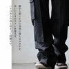 【モデルコメント】ウエストで穿きました。ベルトループは軽いフィット感です。中は、スウェットパンツも合わせやすそうなゆとりがありました。 【客観的コメント】裾は地面にかなり擦れる丈の長さです。シルエットもルーズな感じにはなっちゃいますね。
