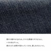 軽やかで着始めから柔らかく、ハリのあるコットン100%のデニム地。編地による伸縮性が若干あり、透け感はありません。