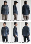 【モデルコメント】中は、薄手のTeeやカットソーくらいは合わせやすそうです。程好くゆとりがあって、ボクは着るならこのサイズが良いですね。 【客観的コメント】まもるくらいの体型なら、すっきりと着たいならMサイズ、ゆとりを持って着たいならLサイズって感じだね。