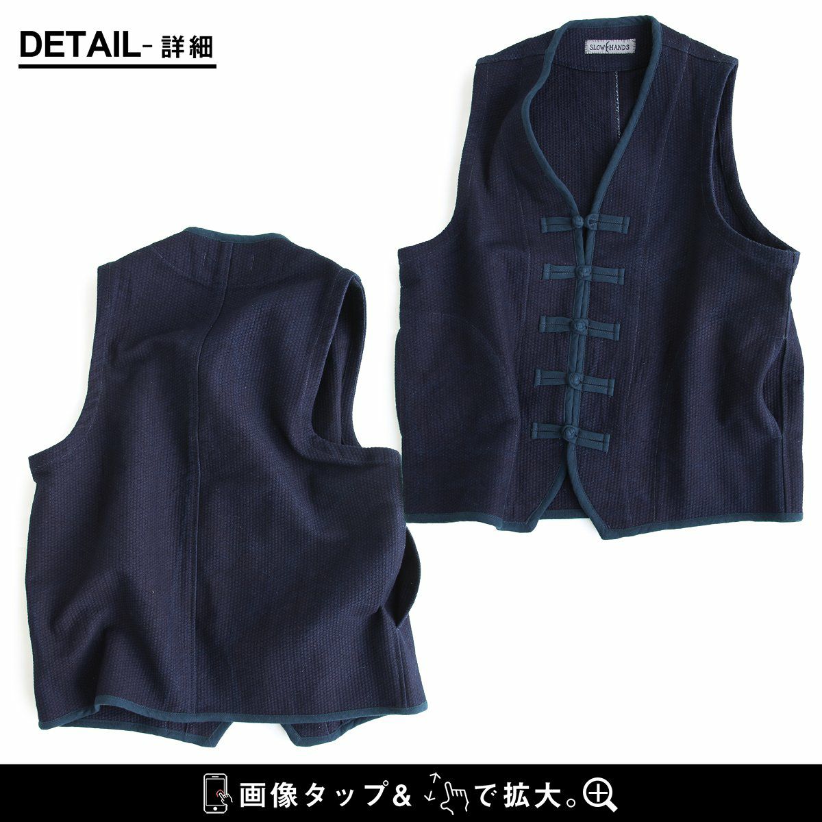 他の画像を見る ひと癖ある見た目と、独特な表情。 SLOW HANDS スローハンズ ベスト メンズ レディース Vネック 重ね着 綿100% コットン ドビー織 インディゴ チャイナボタン ポケット しっかり生地 丈夫 カジュアル パティ 2~3日でお届け 販売価格 ¥ 20,900 税込 在庫切れ カートに入れる お気に入りに登録する