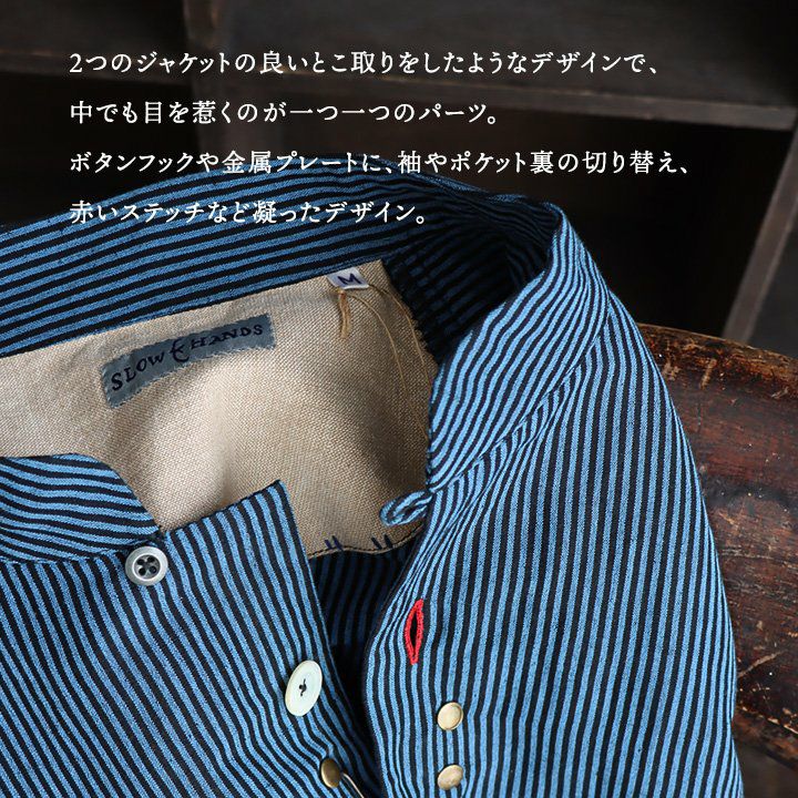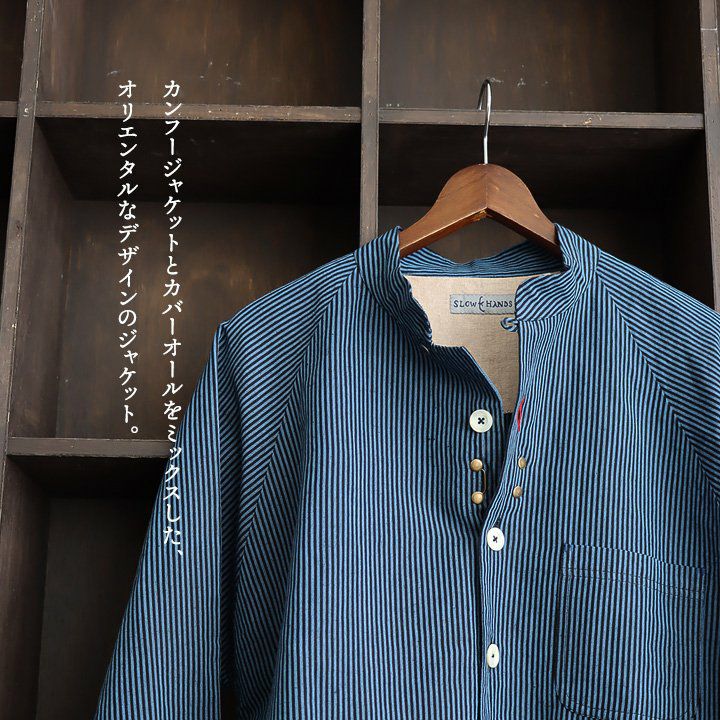 他の画像を見る オリエンタルな「手仕事」の温もり。 SLOW HANDS スローハンズ ジャケット カバーオール カンフージャケット メンズ レディース スタンドネック ストライプ 綿麻 コットン リネン 薄手 軽い ゆったり 大きいサイズ カジュアル パティ 2~3日でお届け 販売価格 ¥ 25,300 税込 在庫切れ カートに入れる お気に入りに登録する