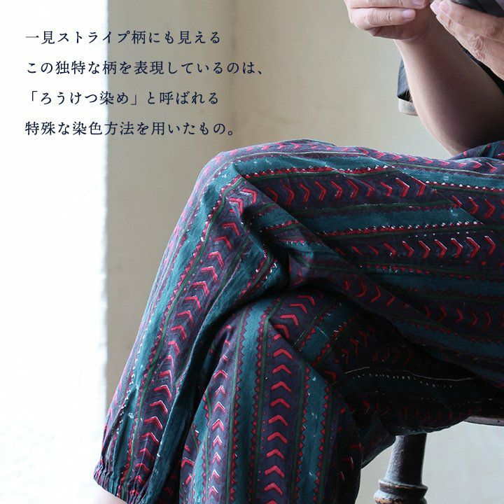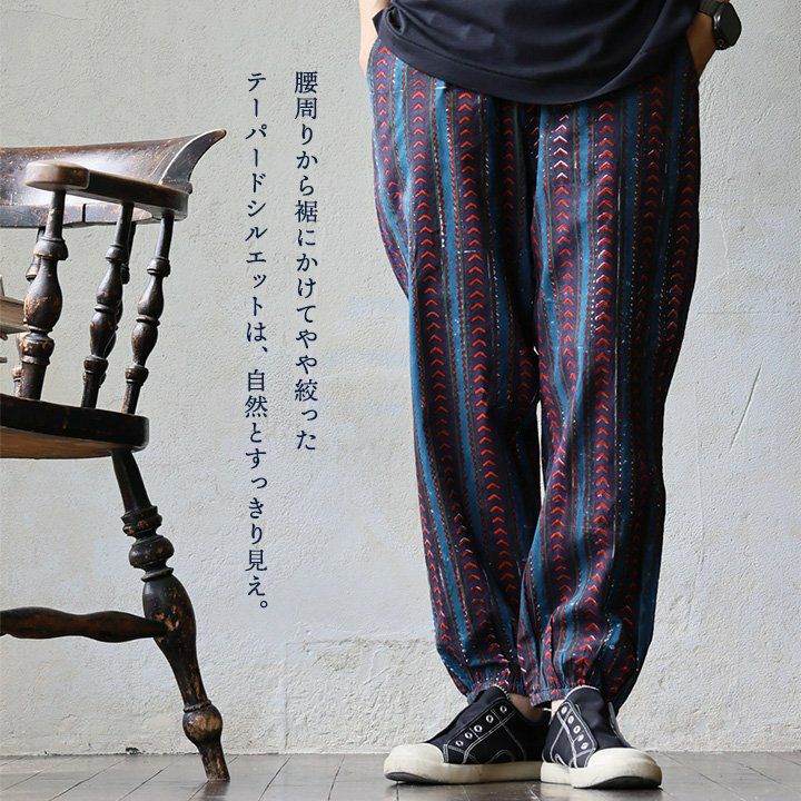 他の画像を見る 誰ともカブらない、手仕事ならではの独特な模様。 SLOW HANDS スローハンズ パンツ テーパード ストレート メンズ レディース ろうけつ染め ストライプ 綿100 コットン 薄手 通気性 軽い ウエストゴム 裾ゴム ゆったり 体型カバー 大きいサイズ カジュアル 夏 パティ 2~3日でお届け 販売価格 ¥ 23,100 税込 在庫切れ カートに入れる お気に入りに登録する