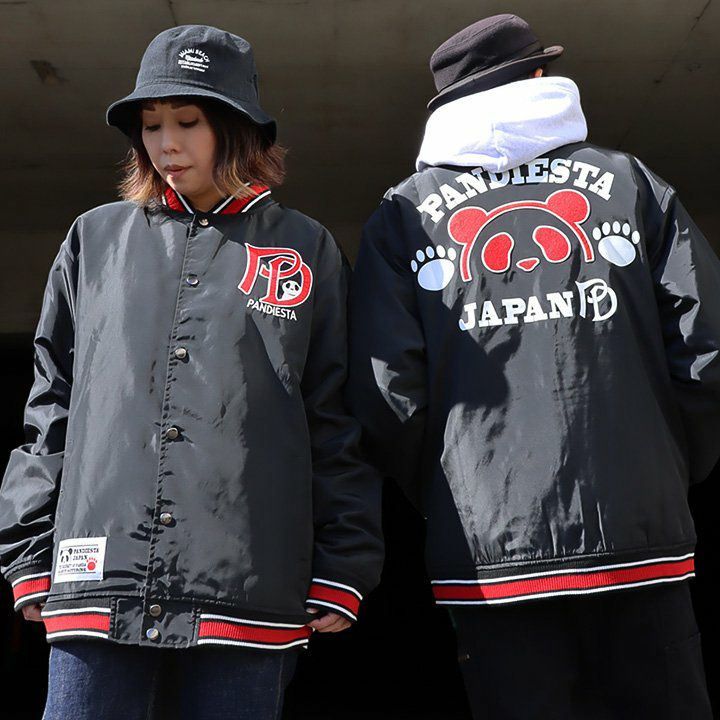 5. PANDIESTAJAPAN パンディエスタジャパン スカジャン ジャケット メンズ レディース パンダ プリント 刺繍 ワッペン ポリエステル100% 薄中綿 キルティング 裏地付き リブ切り替え すっきり 秋 冬 カジュアル ストリート