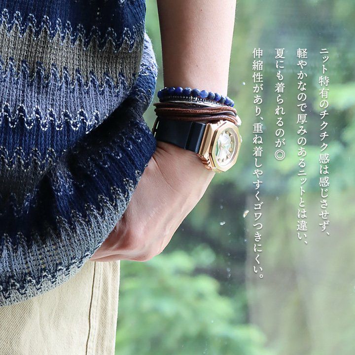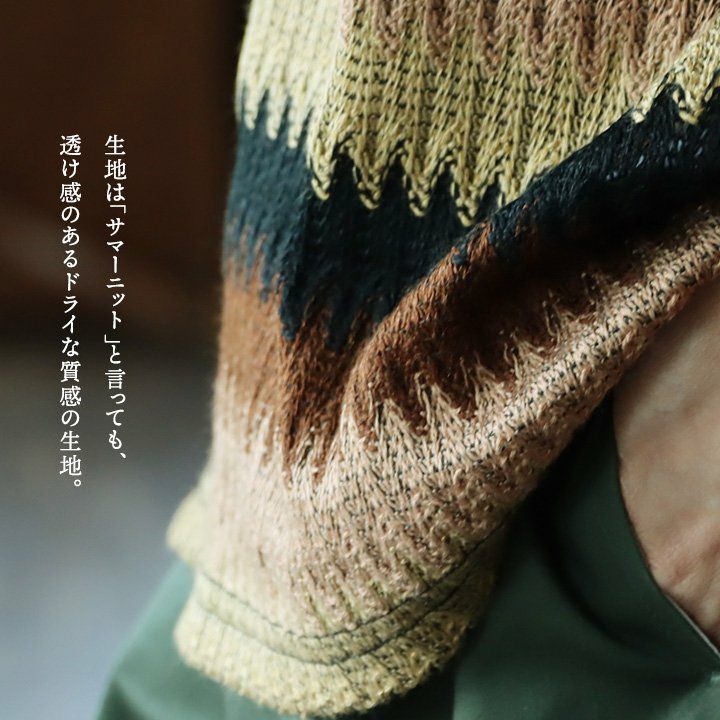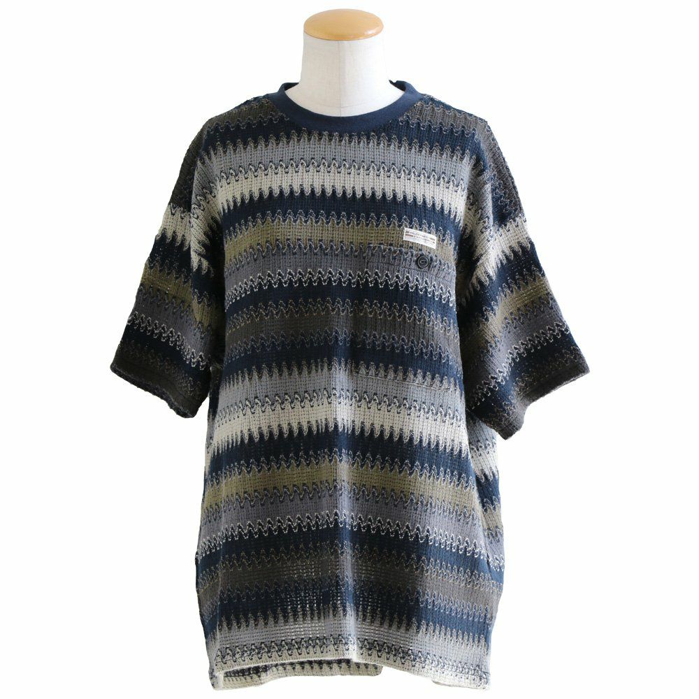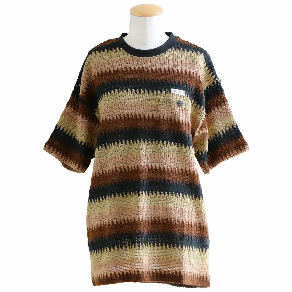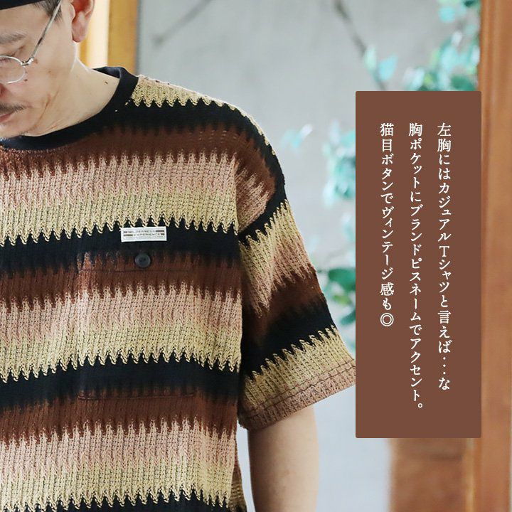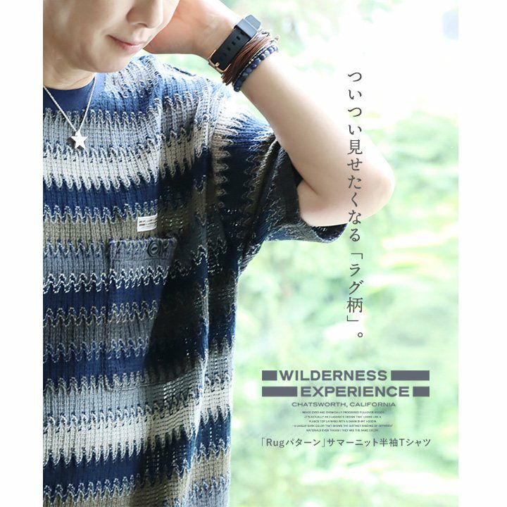 ついつい見せたくなる「ラグ柄」。 Tシャツ 半袖 サマーニット クルーネック メンズ レディース ポリエステル ラグ柄 ネイティブ 胸ポケット 透け感 シアー 伸縮性 ゆったり 大きいサイズ カジュアル アメカジ 春 夏 秋 パティ WILDERNESS EXPERIENCE ウィルダネスエクスペリエンス
