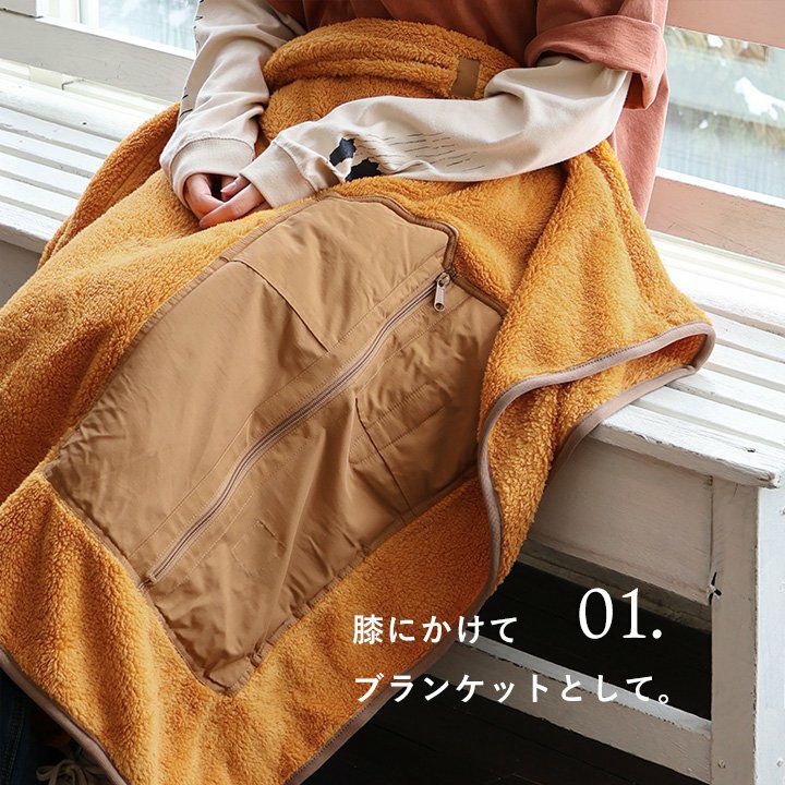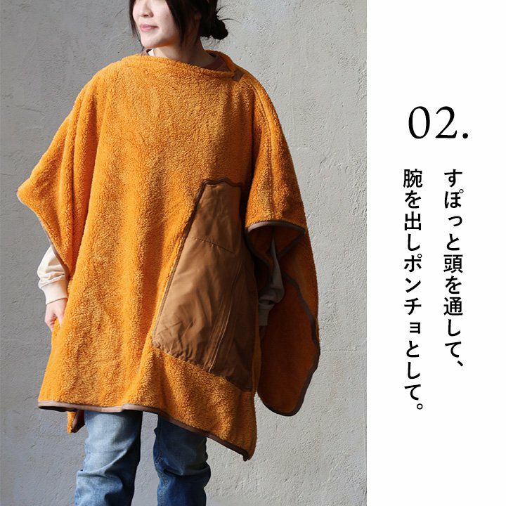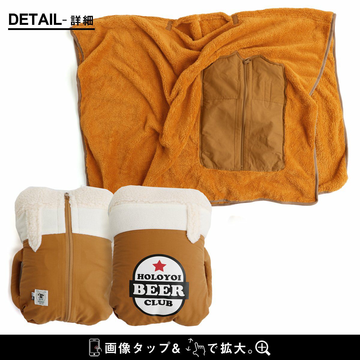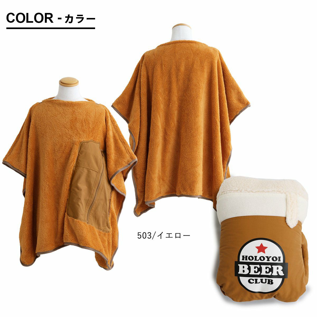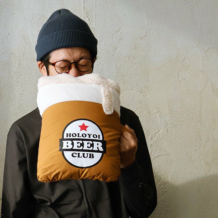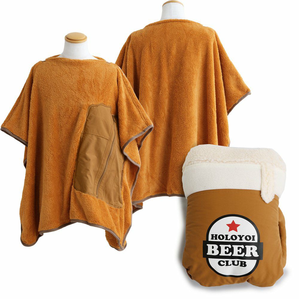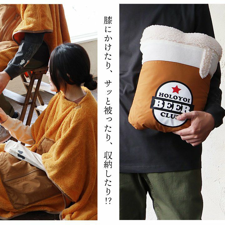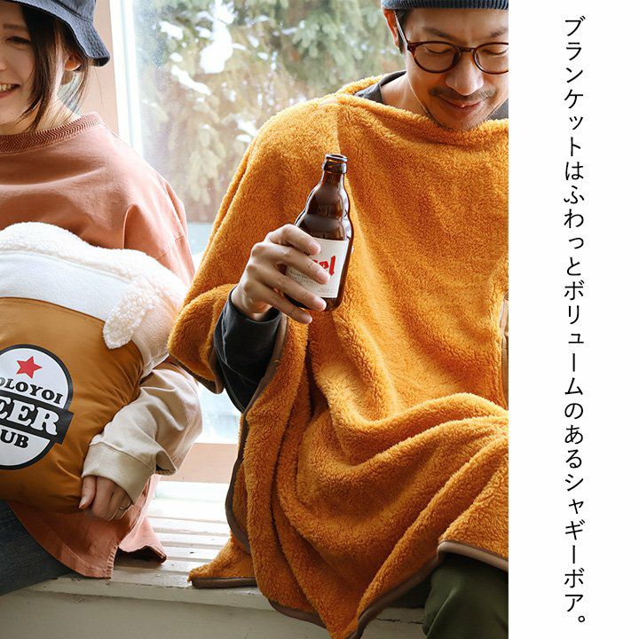 膝にかけたり、サッと被ったり、収納したり!? ブランケット ポンチョ クッション メンズ レディース 3WAY パッカブル ビール プリント ロクヨンクロス しっかり生地 シャギーボア 暖かい 保温性 防寒 お出かけ アウトドア キャンプ カジュアル 秋 冬 パティ