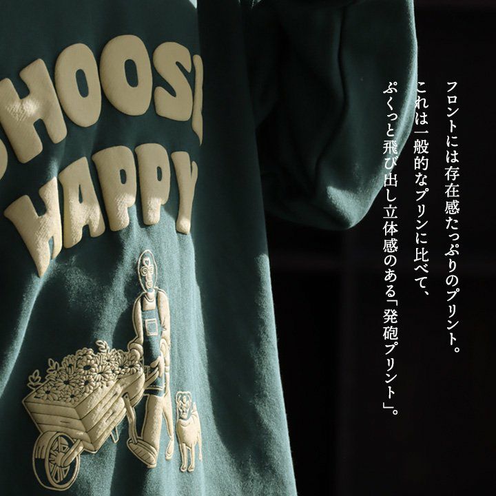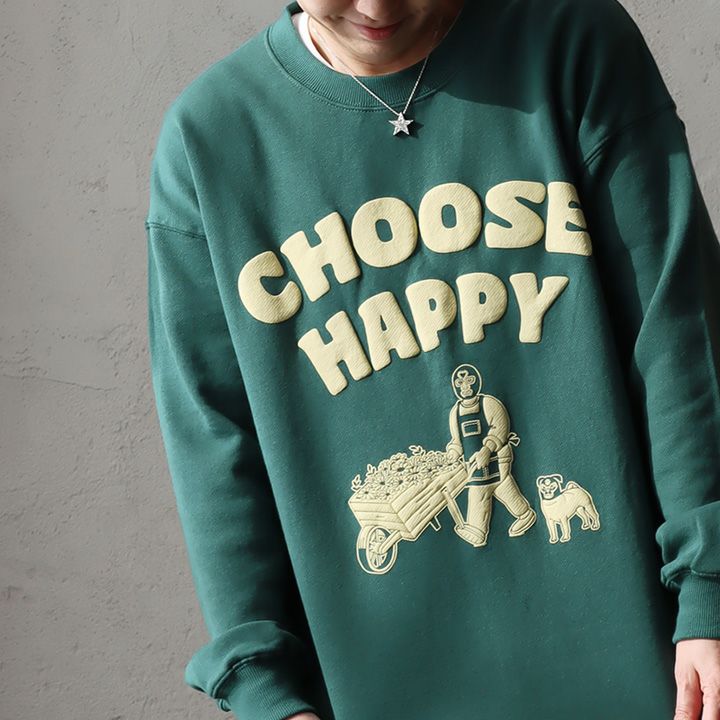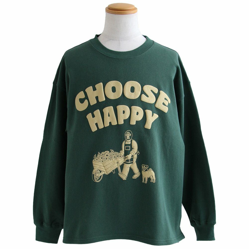 Cheerful Smile gym master ジムマスター スウェット 長袖 メンズ レディース クルーネック 袖リブ 発砲プリント ワンポイント 綿100 コットン 裏毛 伸縮性 ゆったり 大きいサイズ 体型カバー カジュアル 春 パティ