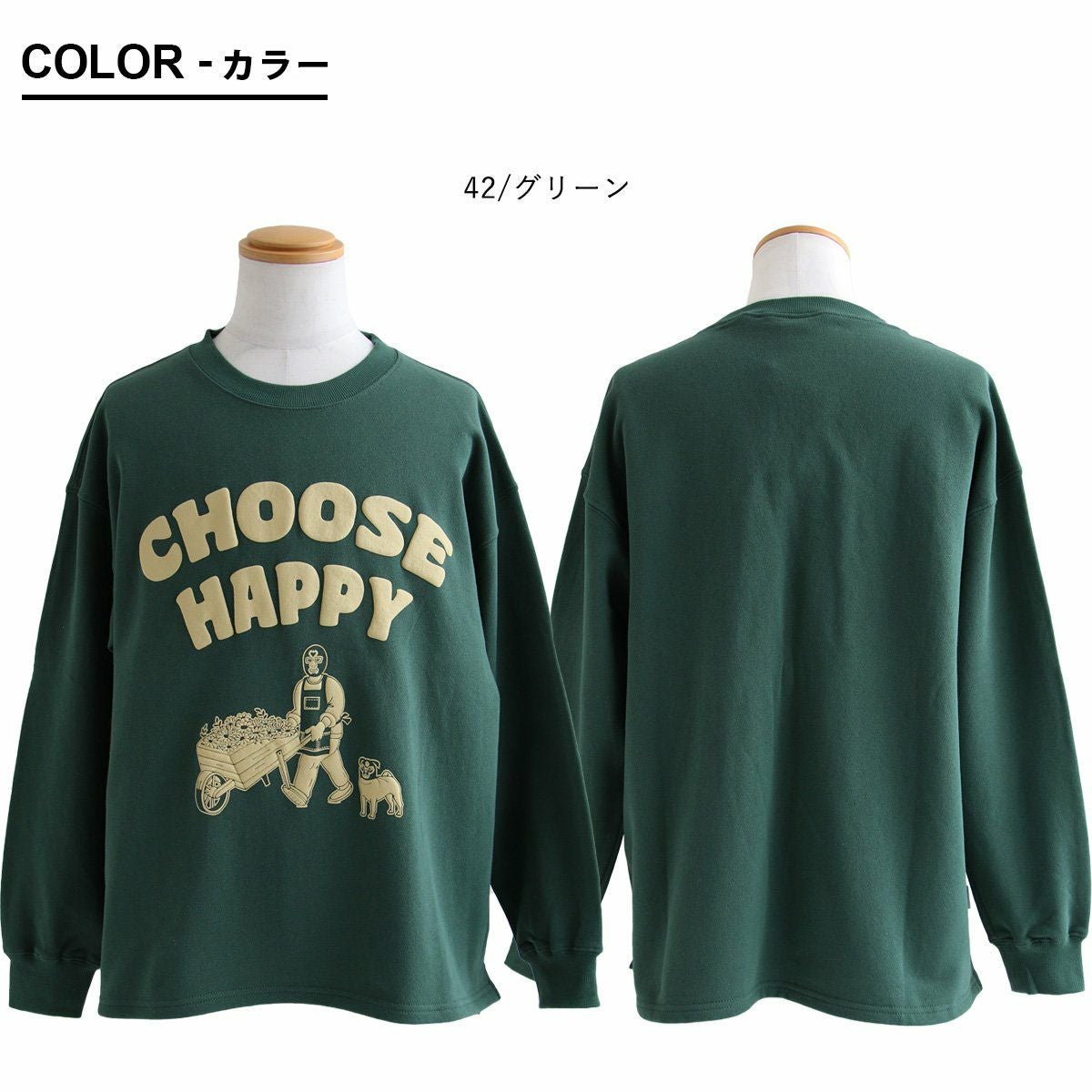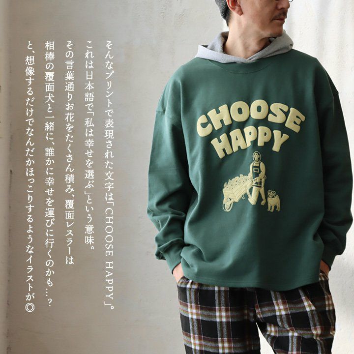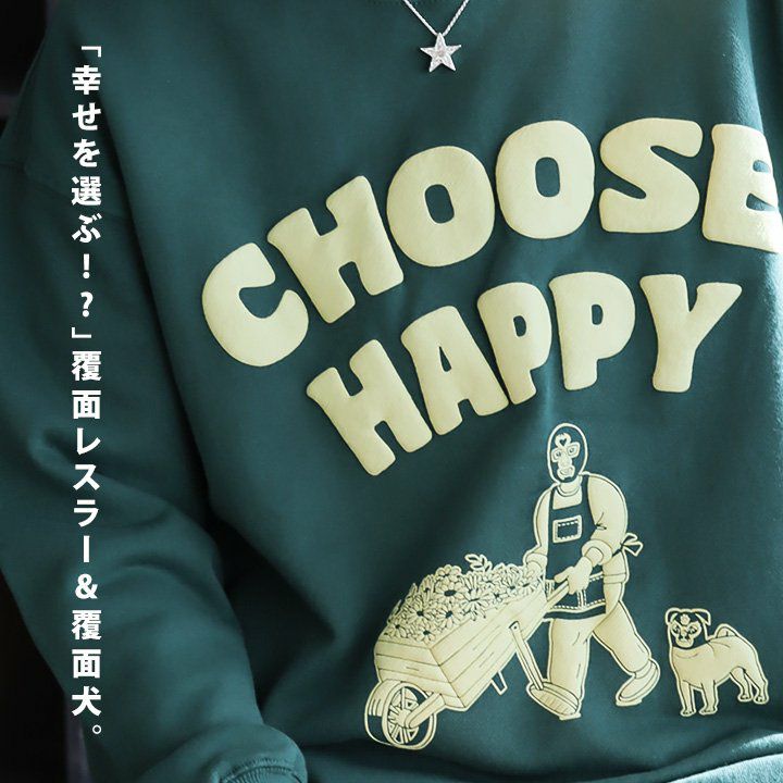 「幸せを選ぶ!?」覆面レスラー&覆面犬。 gym master ジムマスター スウェット トレーナー 長袖 メンズ レディース クルーネック 綿100 コットン 裏毛 発砲 プリント ロゴ 覆面レスラー 覆面犬 伸縮性 ゆったり 大きいサイズ 体型カバー カジュアル 秋 冬 パティ