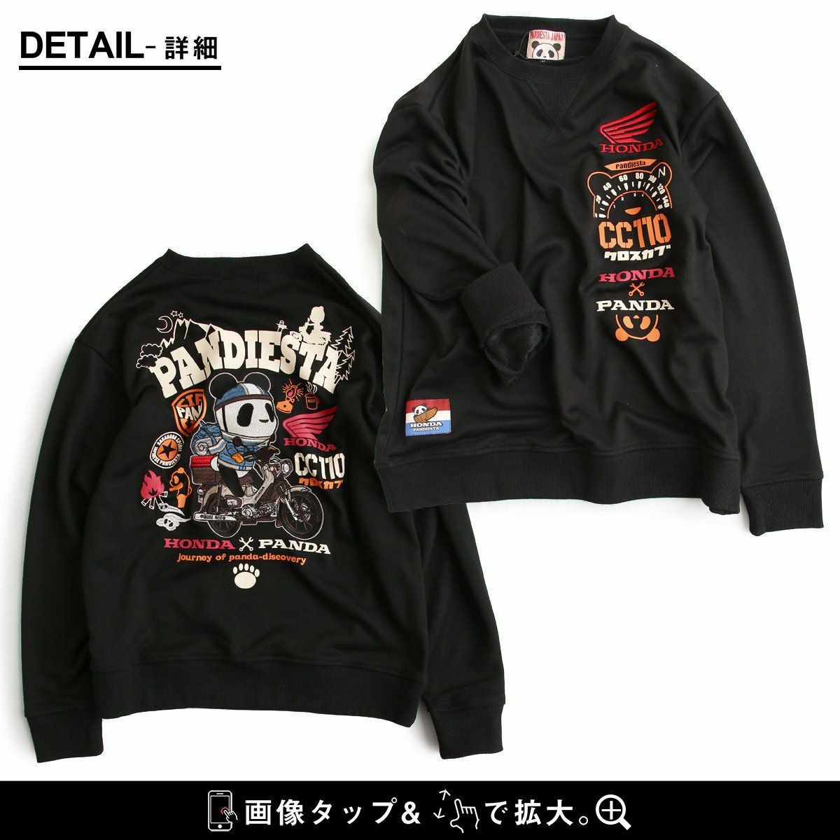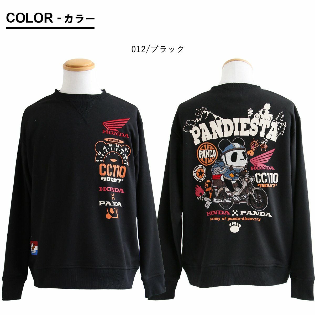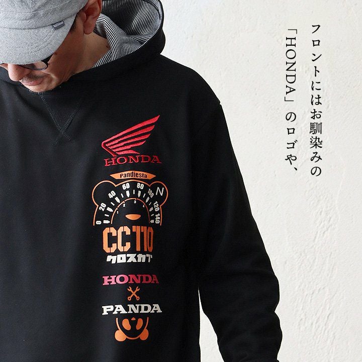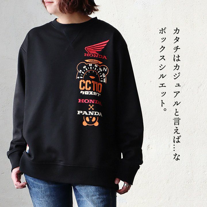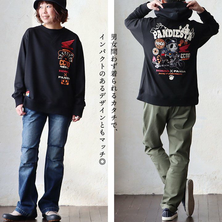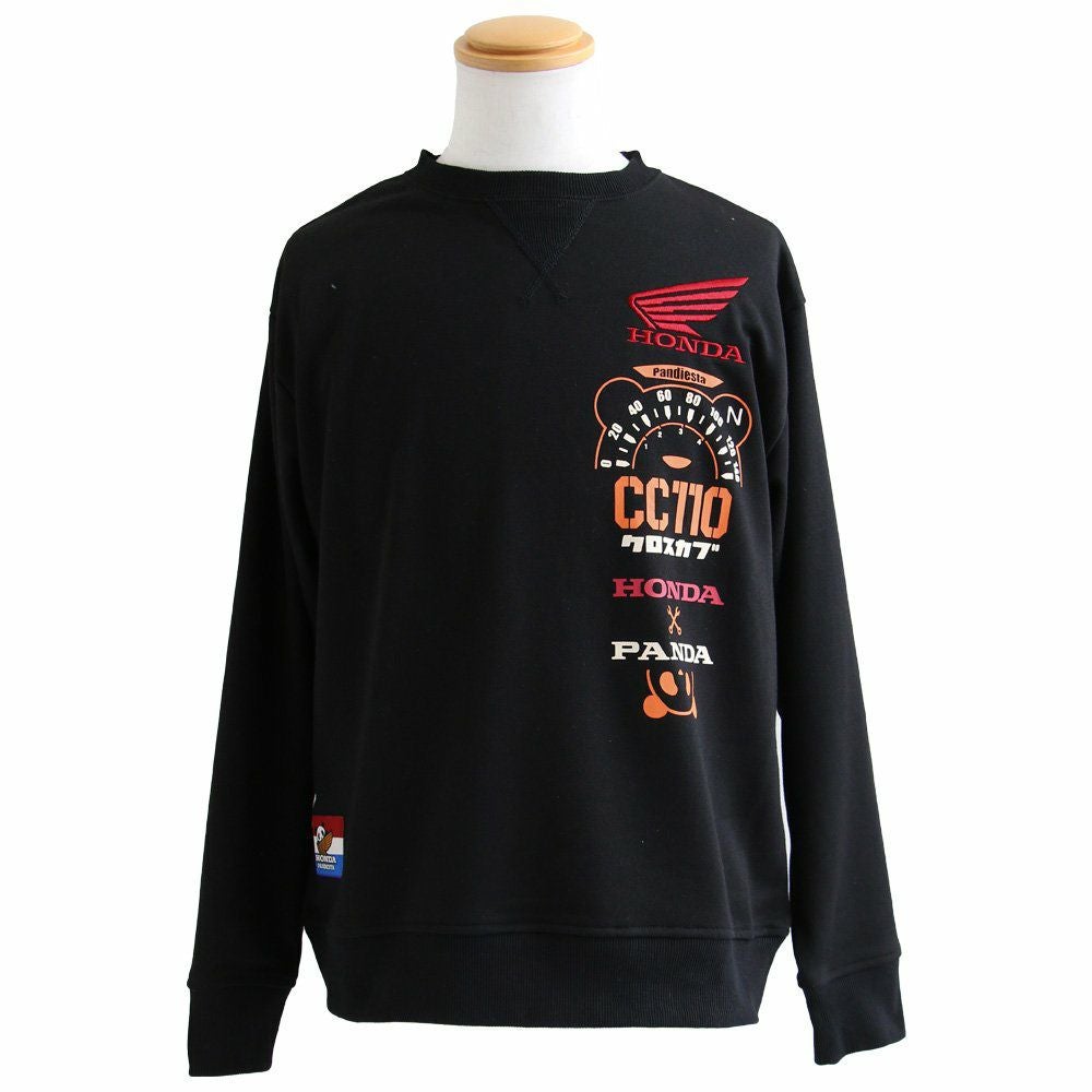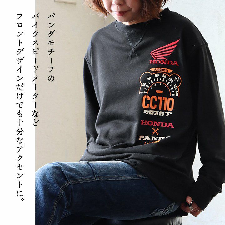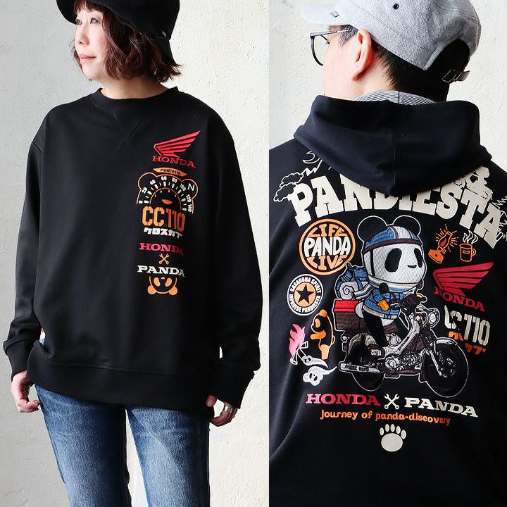 愛車とパンダ。 PANDIESTAJAPAN パンディエスタジャパン スウェット トレーナー 長袖 メンズ レディース クルーネック パンダ HONNDA コラボ バイク 刺繍 プリント コットン ポリエステル 裏毛 カジュアル パティ