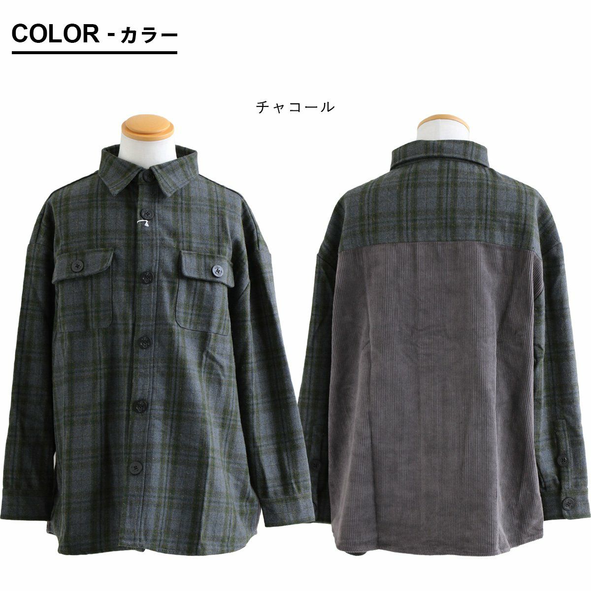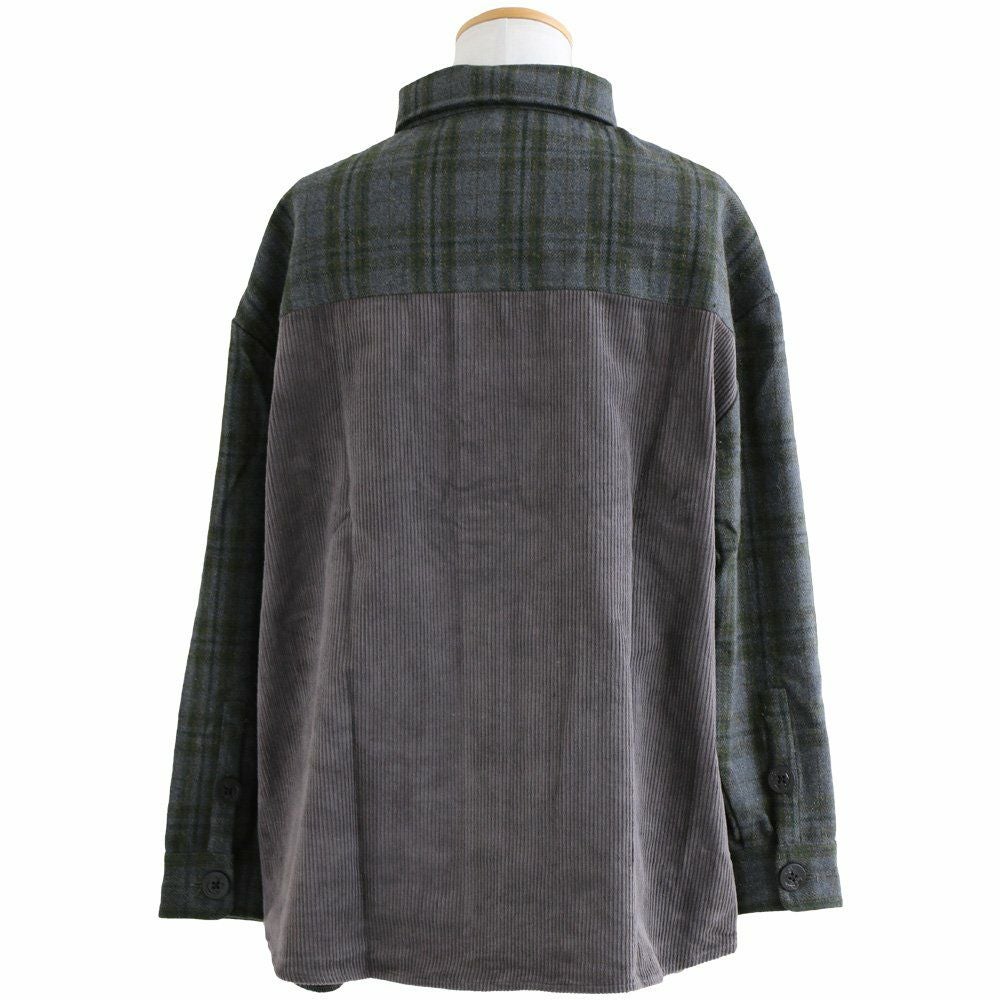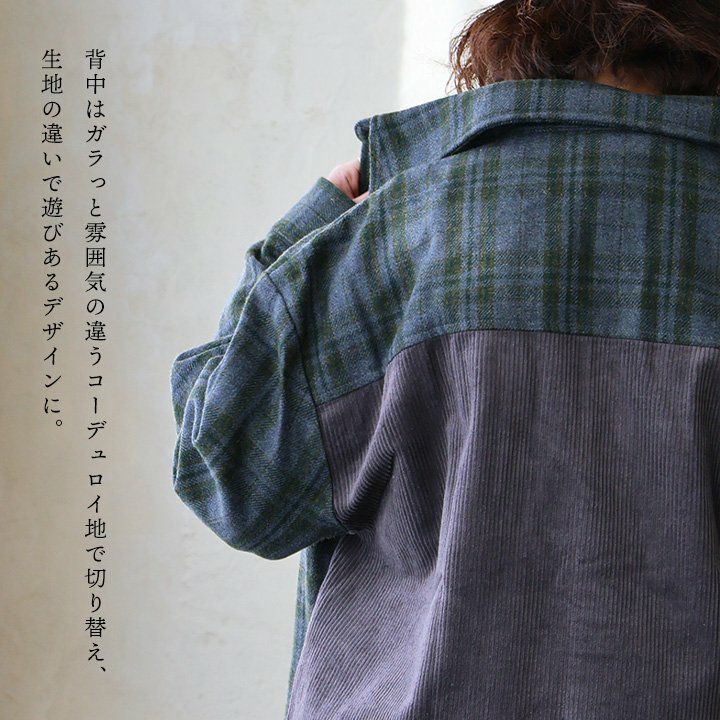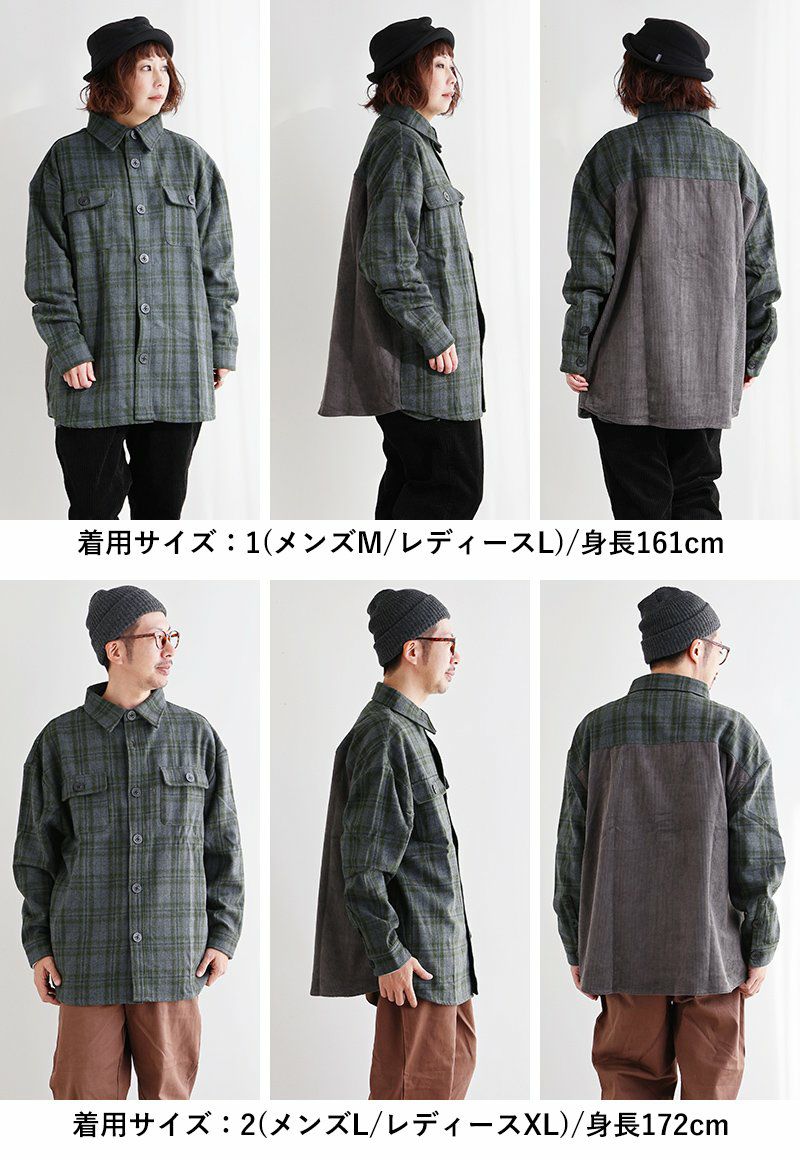 絶妙な渋さと遊び。 ジャケット CPO シャツジャケット 長袖 メンズ レディース チェック柄 異素材切り替え コーデュロイ ウール 軽い 暖かい しっかり生地 ゆったり 大きいサイズ 体型カバー カジュアル ヴィンテージ 秋 冬 パティ