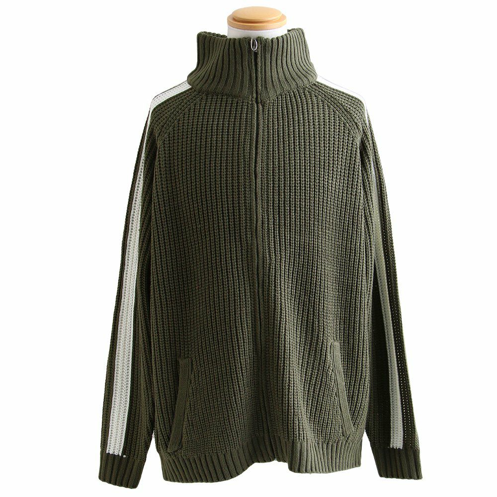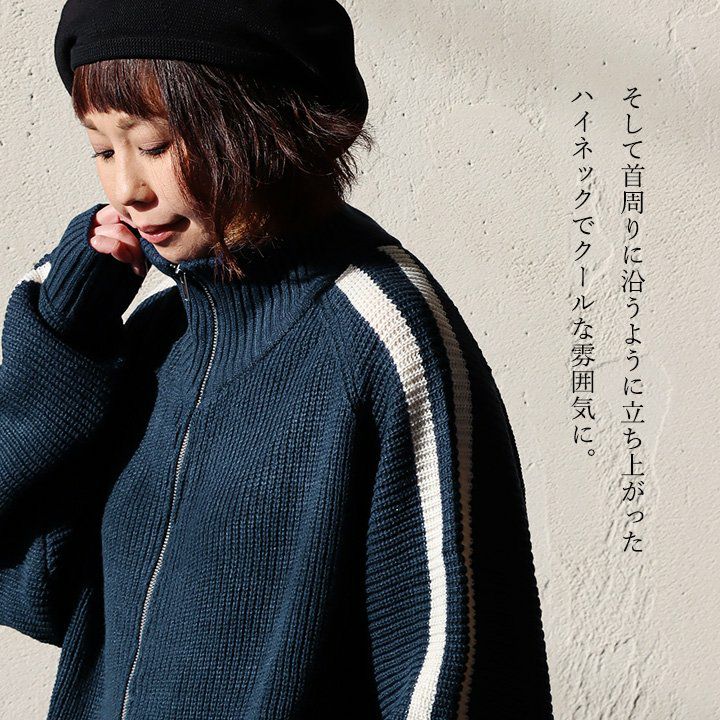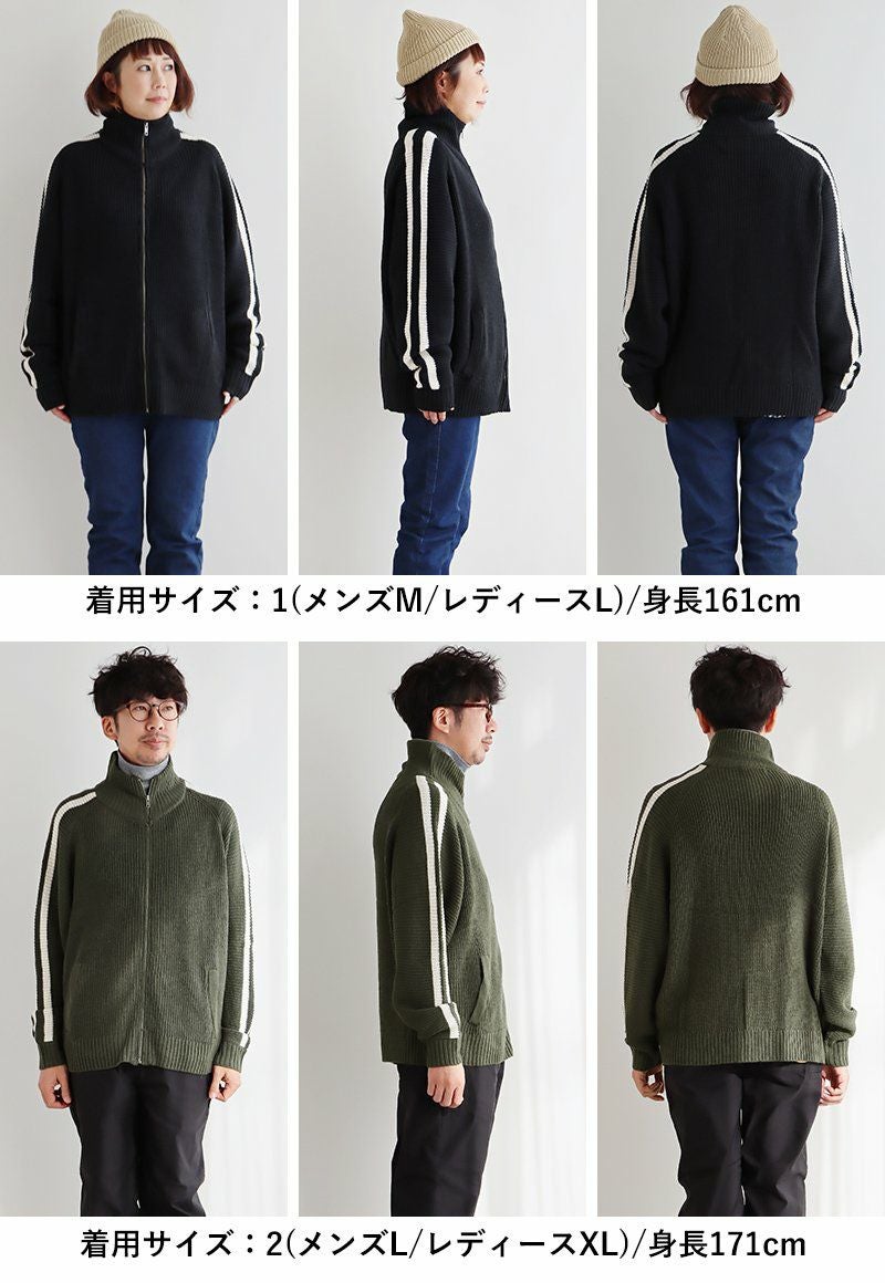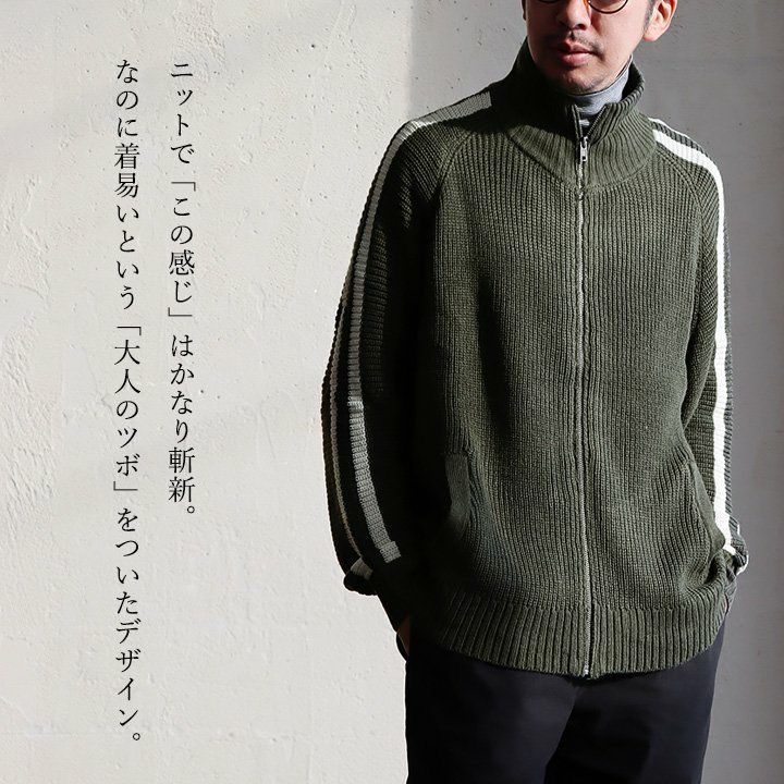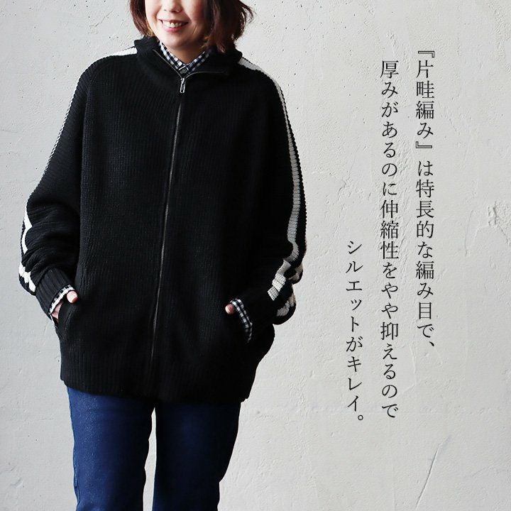 ニットで「この感じ」はツボ。 カーディガン ニット メンズ レディース ニットカーデ 袖ライン ジャージ トラックジャケット ジップアップ 片畦編み ワイド 大きいサイズ スポーティ 無地 秋 冬 パティ