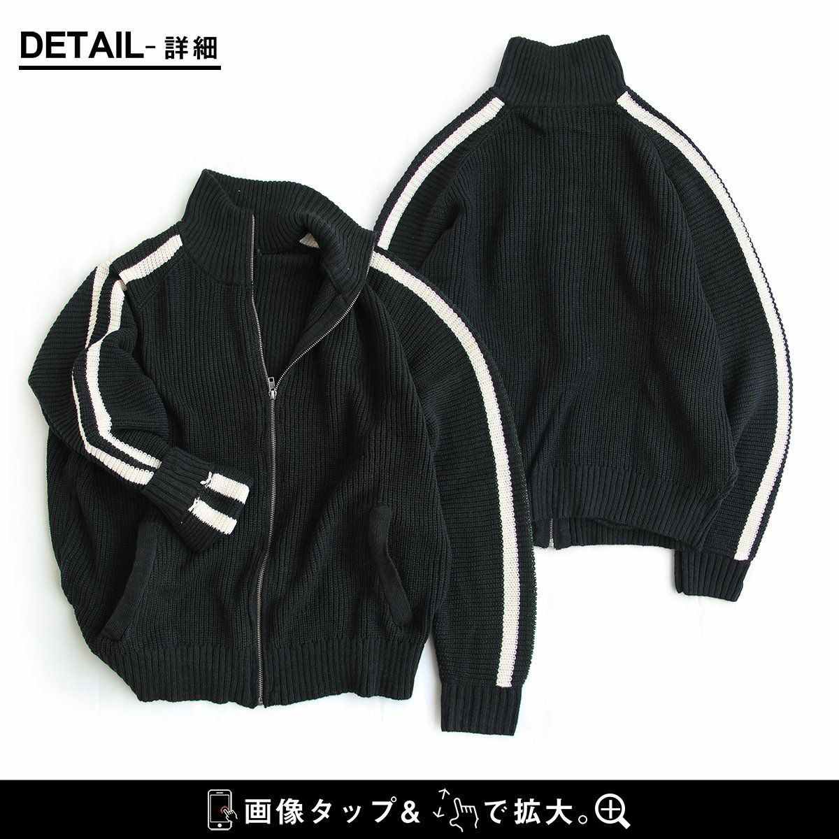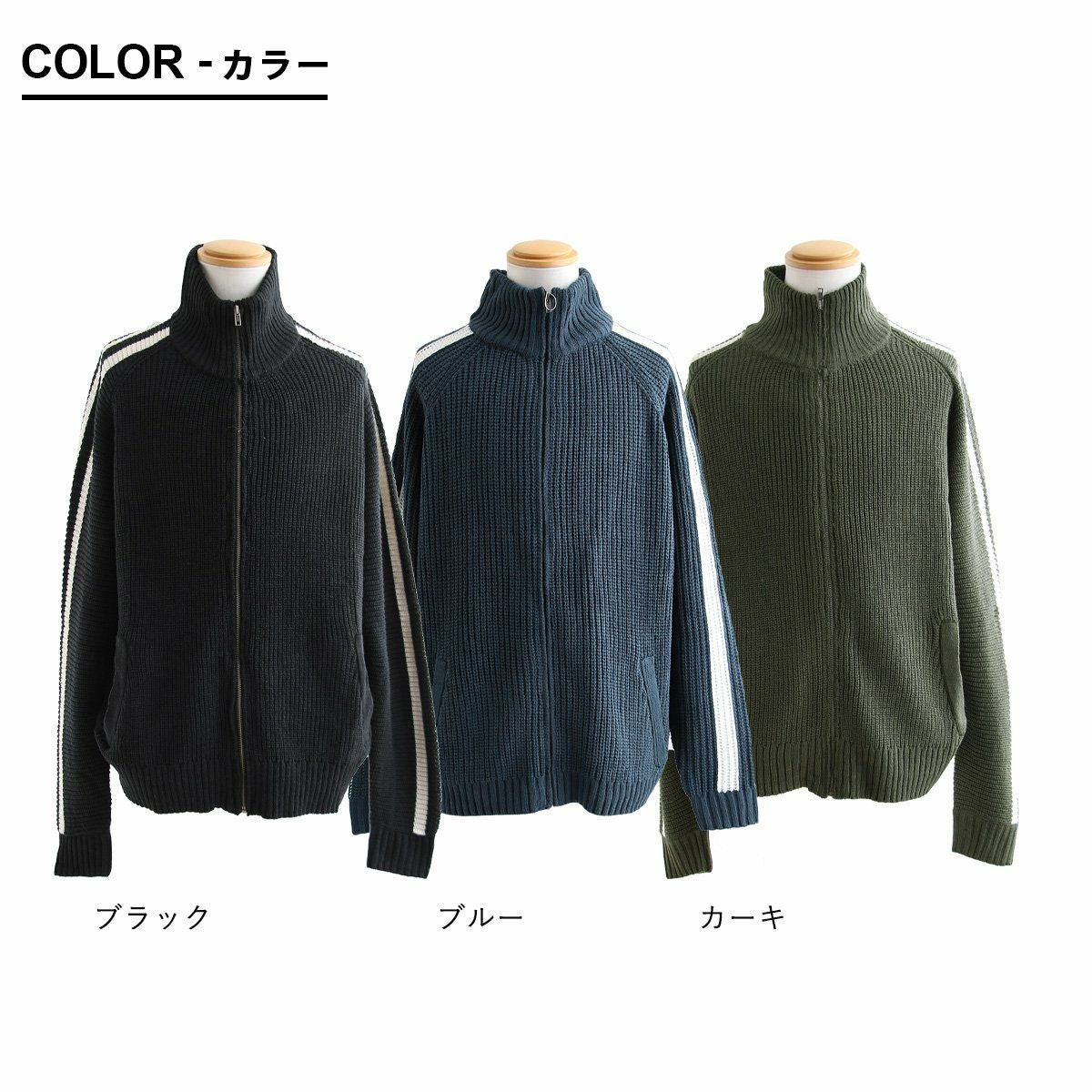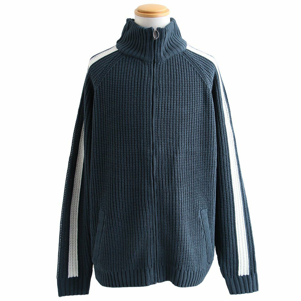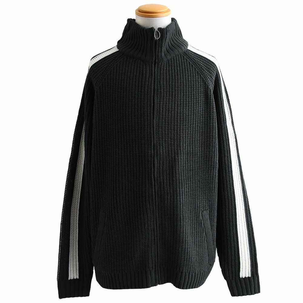 ニットで「この感じ」はツボ。 カーディガン ニット メンズ レディース ニットカーデ 袖ライン ジャージ トラックジャケット ジップアップ 片畦編み ワイド 大きいサイズ スポーティ 無地 秋 冬 パティ