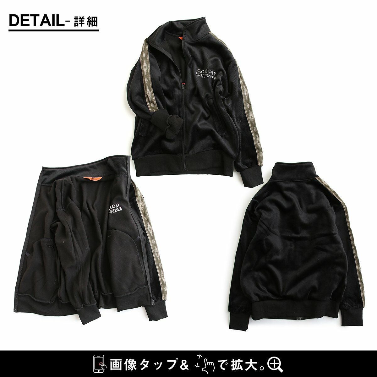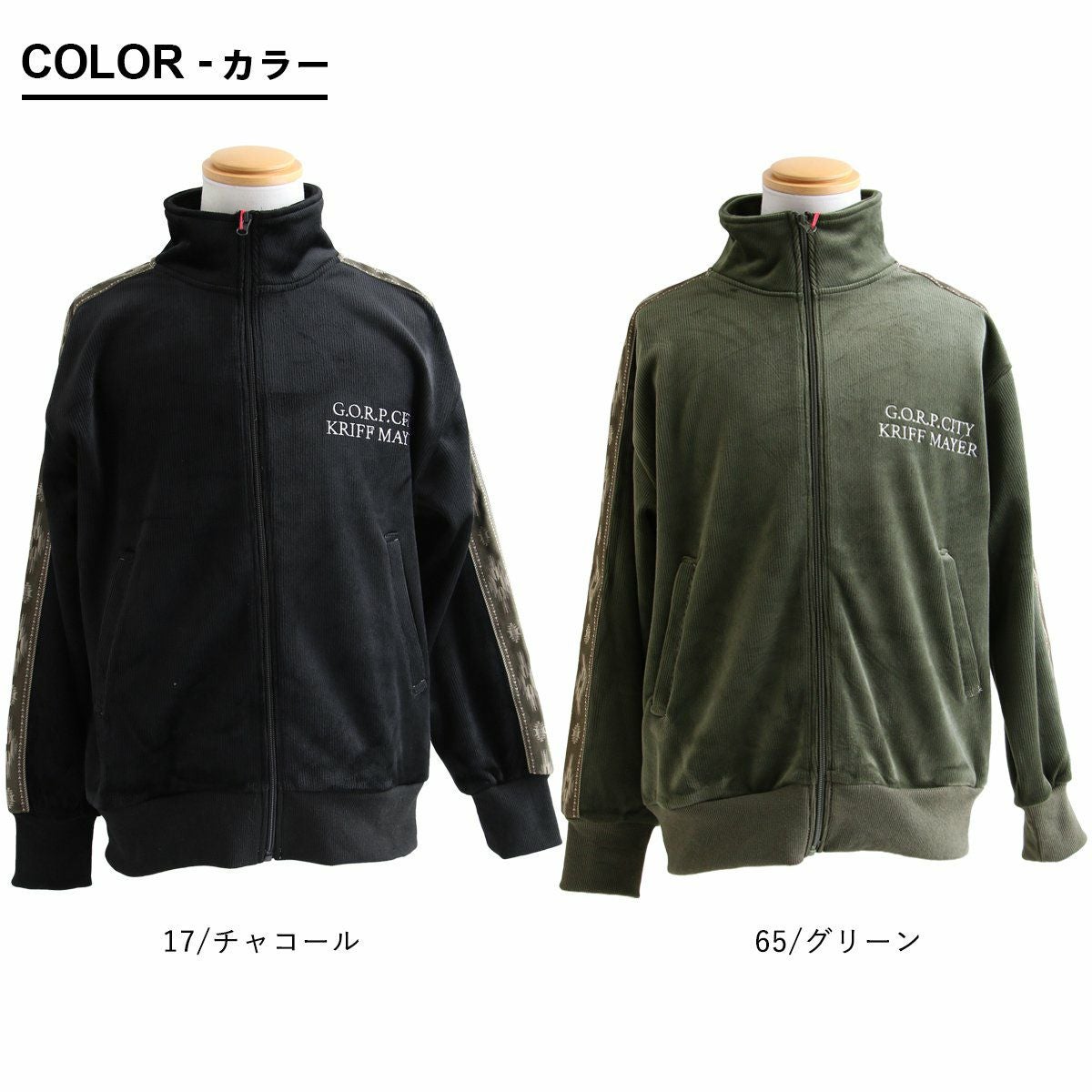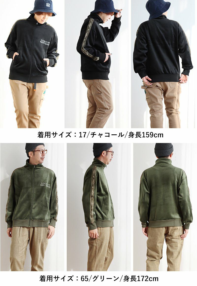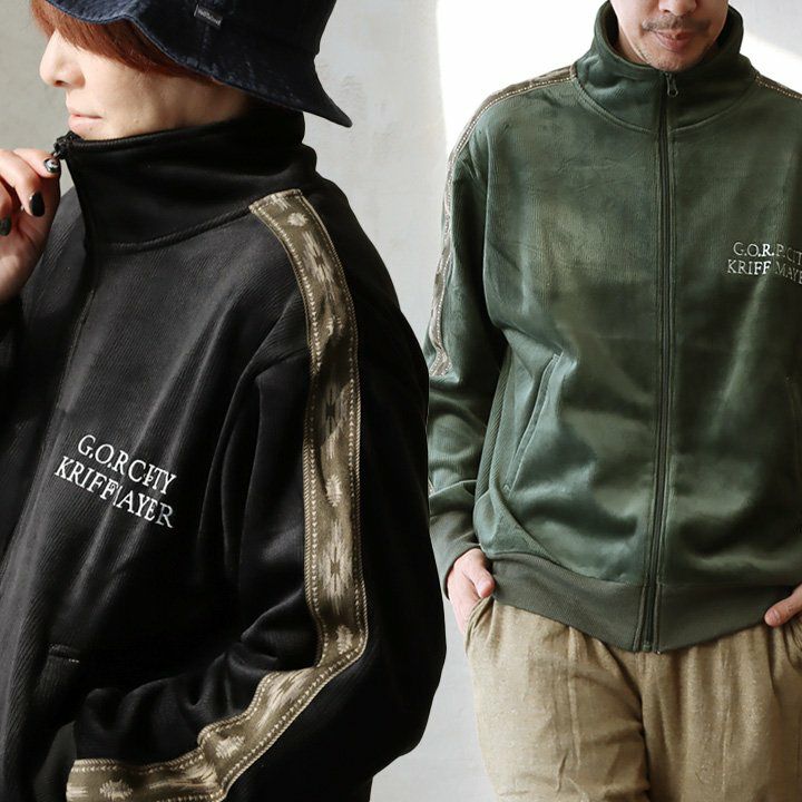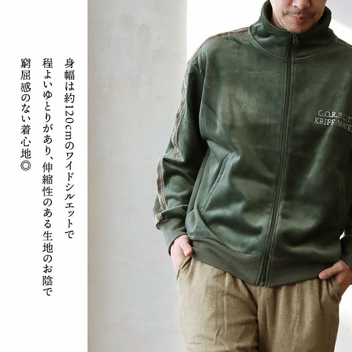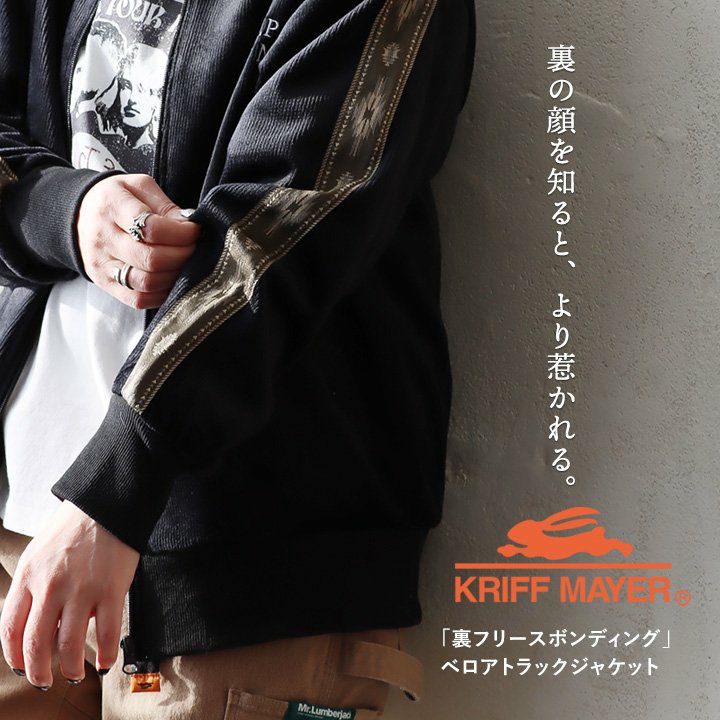 裏の顔を知ると、より惹かれる。 KRIFF MAYER クリフメイヤー トラックジャケット 長袖 メンズ レディース ハイネック ベロア フリース ボンディング ライン オルテガ柄 起毛 暖かい 保温性 ゆったり 大きいサイズ 体型カバー カジュアル 秋 冬 パティ