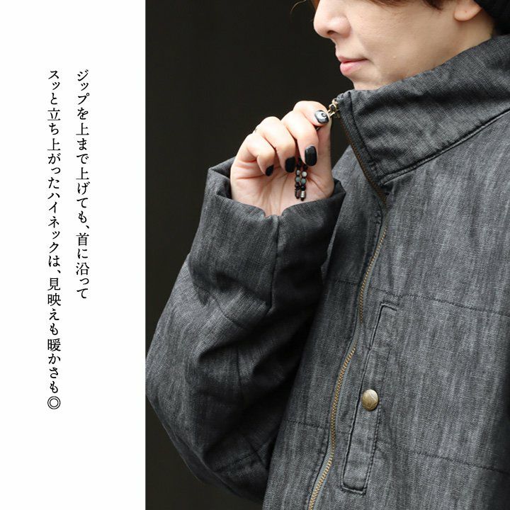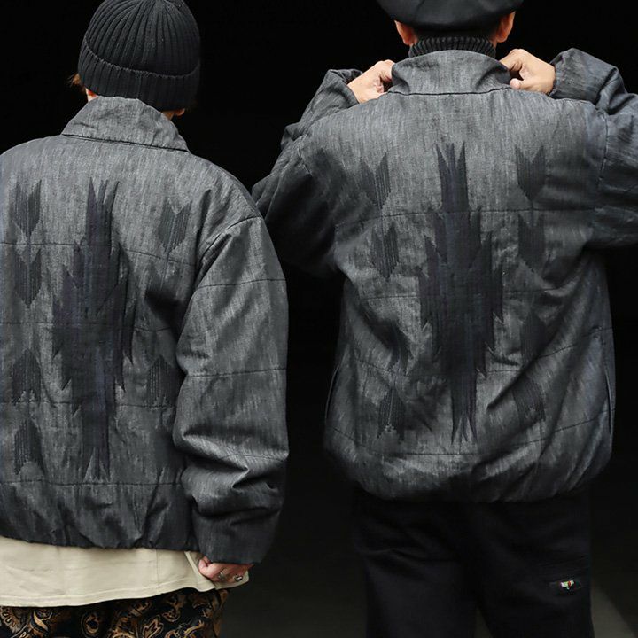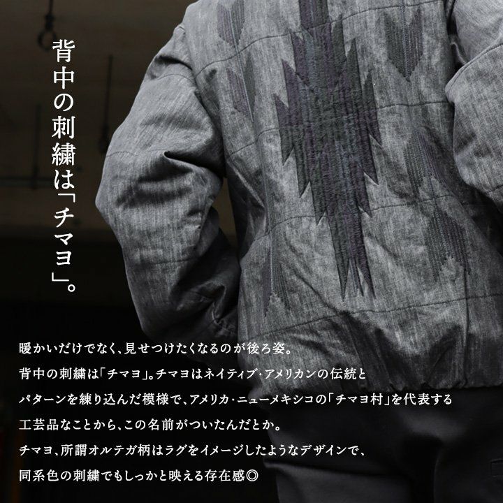 渋く、カッコよく、暖かく。 KRIFF MAYER クリフメイヤー ジャケット 長袖 メンズ レディース ハイネック デニム 刺繍 チマヨ オルテガ柄 中綿 綿100 裏地付き 暖かい ゆったり 大きいサイズ カジュアル 秋 冬 パティ