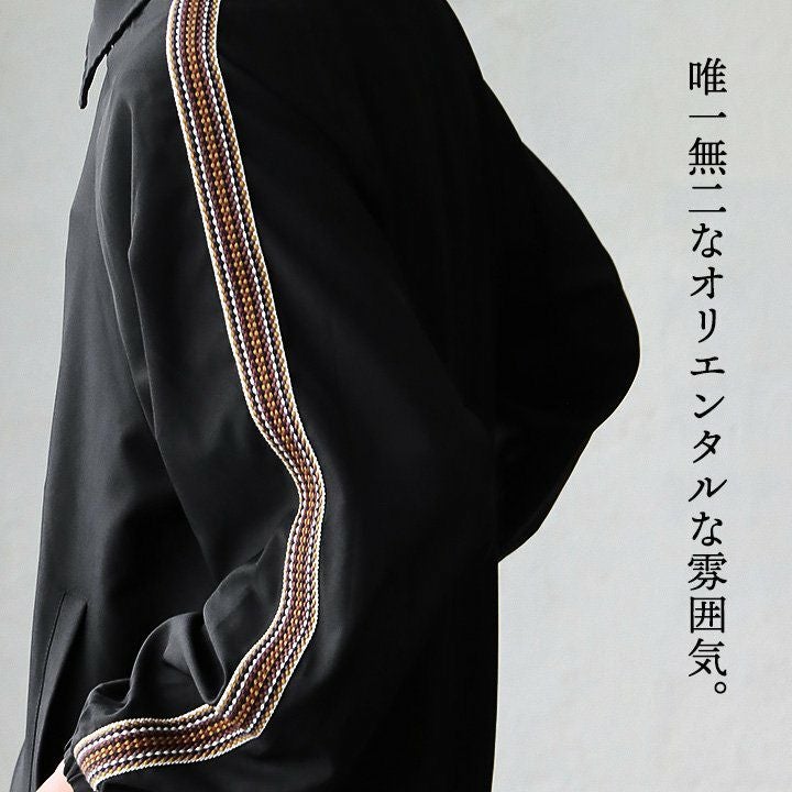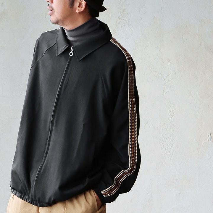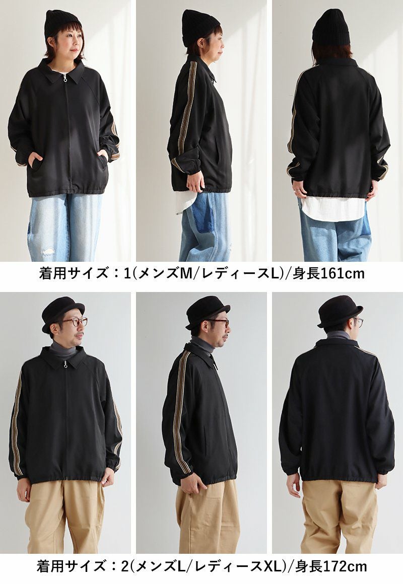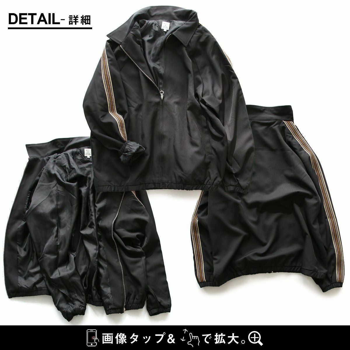唯一無二なオリエンタルな雰囲気。 ブルゾン ジップブルゾン ジャージ メンズ レディース 無地 刺繍 ライン ブラック 無地 薄手 落ち感 裏地付き 重ね着 大きいサイズ ゆったり カジュアル 秋 冬 パティ