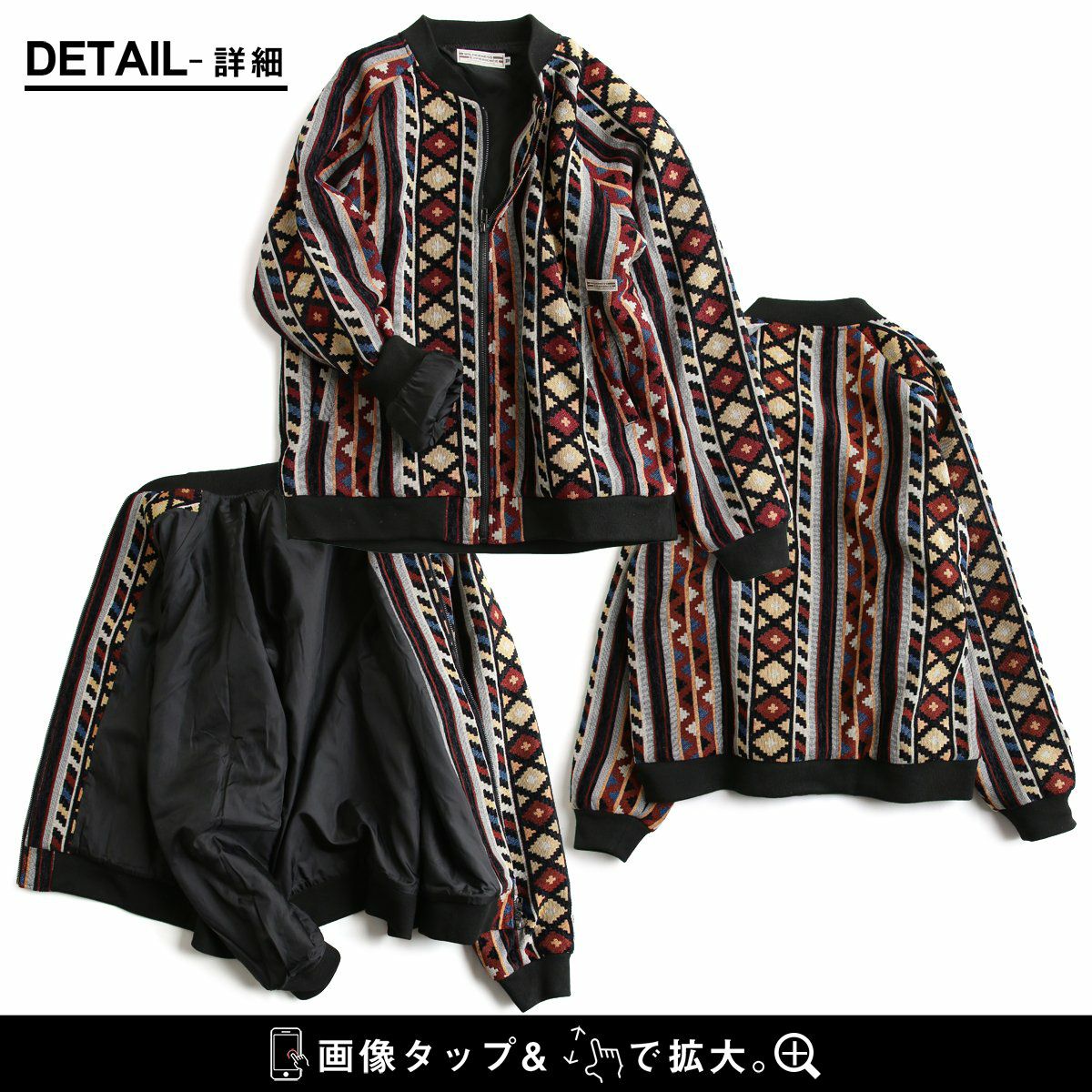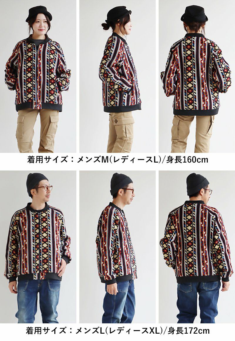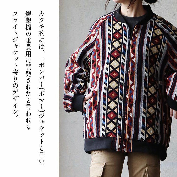 独特の風合いと存在感は、他にない格好良さ。 ブルゾン ジャケット 長袖 メンズ レディース 幾何学柄 ネイティブ ゴブラン リブ切り替え しっかり生地 タフ ゆったり 大きいサイズ カジュアル アメカジ 秋 冬 パティ WILDERNESS EXPERIENCE ウィルダネスエクスペリエンス