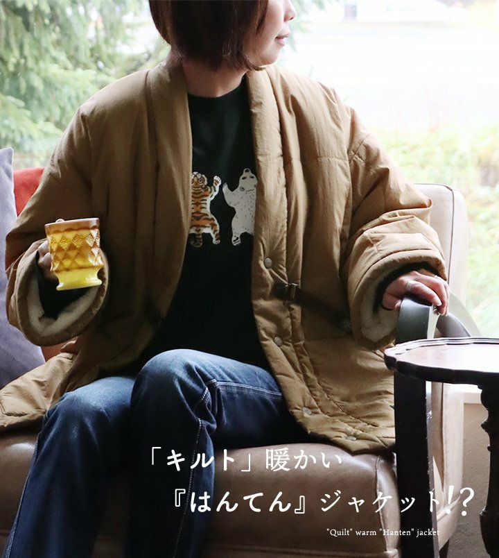 「キルト」暖かい『はんてん』ジャケット!? GRN ジーアルエヌ ジャケット キルティングジャケット はんてん 長袖 メンズ レディース Vネック 裏ボア サーモライト 中綿 カイロポケット 暖かい 保温性 防寒 重ね着 ゆったり 大きいサイズ カジュアル アウトドア 秋 冬 パティ