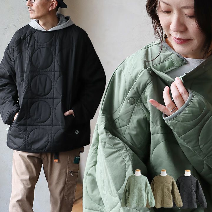 「キルト」暖かくて、持ち運びも出来る!? GRN ジーアルエヌ プルオーバー ライトアウター 長袖 メンズ レディース 重ね着 ポケッタブルコンパクト 持ち運べる 撥水 しっかり生地 タフ 薄手 中綿 キルト 暖かい 軽い ゆったり 大きいサイズ カジュアル アウトドア 秋 冬 パティ