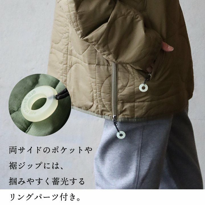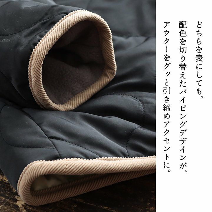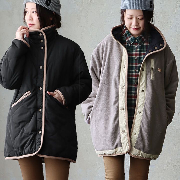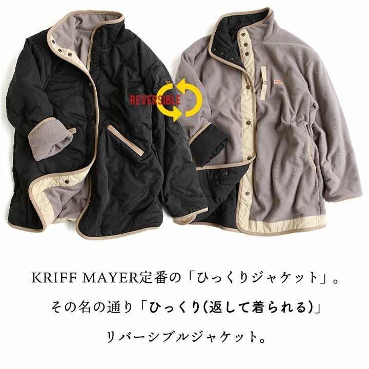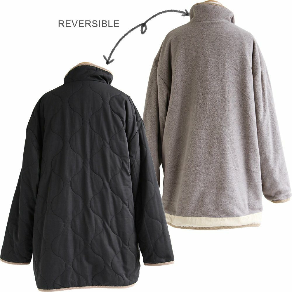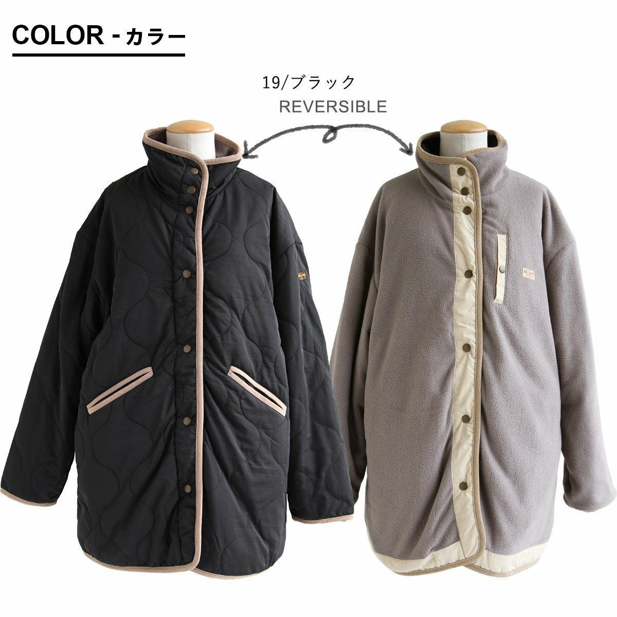 飽きたら、ひっくり返せばいいんです。 KRIFF MAYER クリフメイヤー アウター ジャケット レディース スタンドネック リバーシブル 中綿 キルティング フリース 軽い 暖かい 保温性 防寒 ゆったり 体型カバー カジュアル 秋 冬 パティ