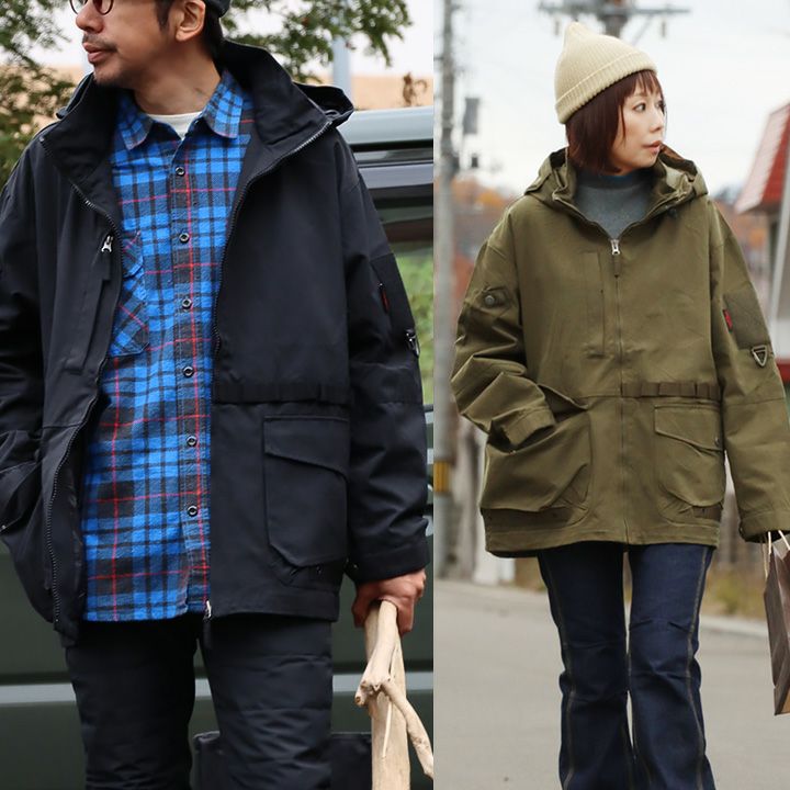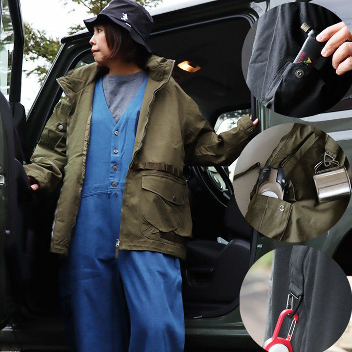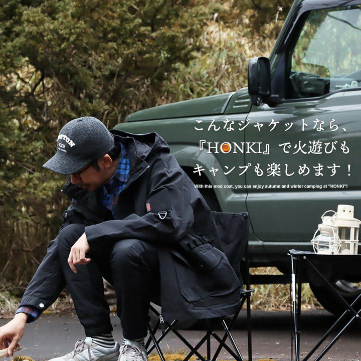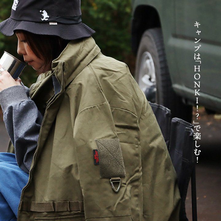 キャンプは「HONKI!?」で楽しむ! ジャケット M-65 メンズ レディース ハイネック フード 2WAY 火遊び HIASOBI ナイロン モダクリル 半永久難燃 DWR 撥水 しっかり生地 秋 冬 キャンプ アウトドア カジュアル パティ