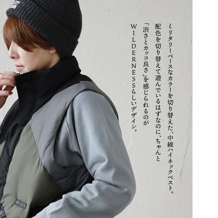 遊んでいるのに、こんなに「渋くて、カッコよくて、暖か」。 ベスト 前開き メンズ レディース 重ね着 ハイネック 配色切り替え ポリエステル 中綿 暖かい 防寒 軽い ポケット 大きいサイズ カジュアル ミリタリー 秋 冬 パティ WILDERNESS EXPERIENCE ウィルダネスエクスペリエンス