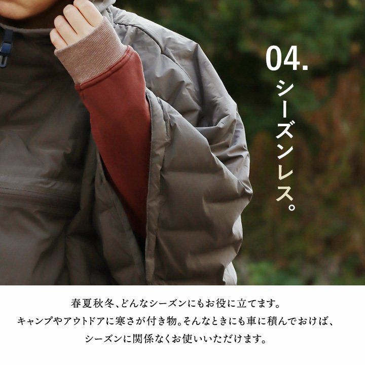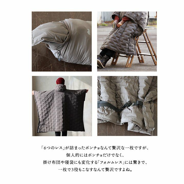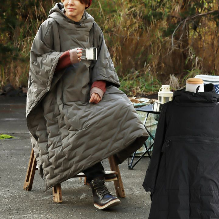 6つの「レス」でキャンプを快適に!? ポンチョ 5分袖 メンズ レディース 重ね着 3WAY アノラック型 掛け布団 寝袋 シュラフ ダウン80 フェザー20 暖かい 軽い 保温性 防寒 ストレッチ ゆったり 大きいサイズ カジュアル アウトドア 秋 冬 パティ