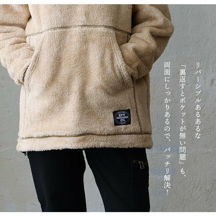 これは!どっちを表にするか、悩みます。 gym master ジムマスター リバーシブル ボア ブルゾン マウンテンパーカー メンズ レディース 暖かい 防風 ジップアップ ハイネック フード 胸ポケット ナイロン 異素材 切り替え アウター 冬 カジュアル パティ