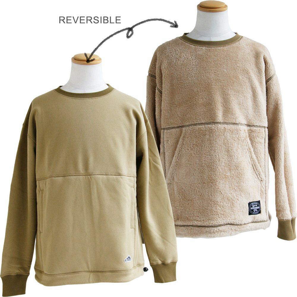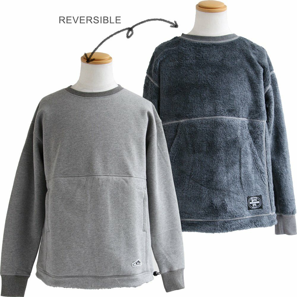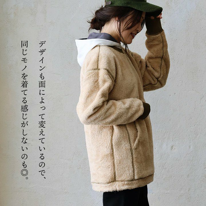 今日は、どっちを表に着よう。 トレーナー ボアトレーナー リバーシブル メンズ レディース ラグラン リブ切り替え ポケット 無地トレーナー 裏ボアトップス 長袖トレーナー 裾スピンドル アウトドア 防寒 ゆったり 大きい 大人カジュアル