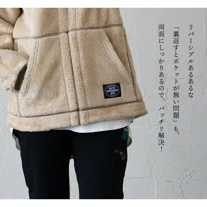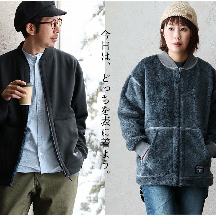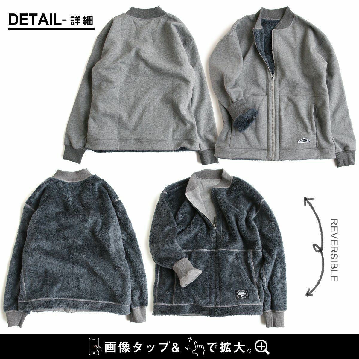 今日は、どっちを表に着よう。 ジャケット 長袖 メンズ レディース ハイネック リバーシブル 配色ステッチ 綿100 コットン シャギーボア 暖かい 軽い 保温性 防寒 すっきり 大きいサイズ カジュアル 秋 冬 パティ
