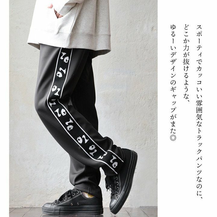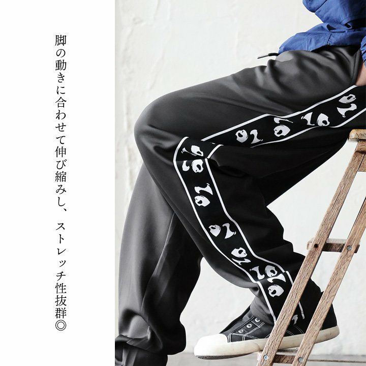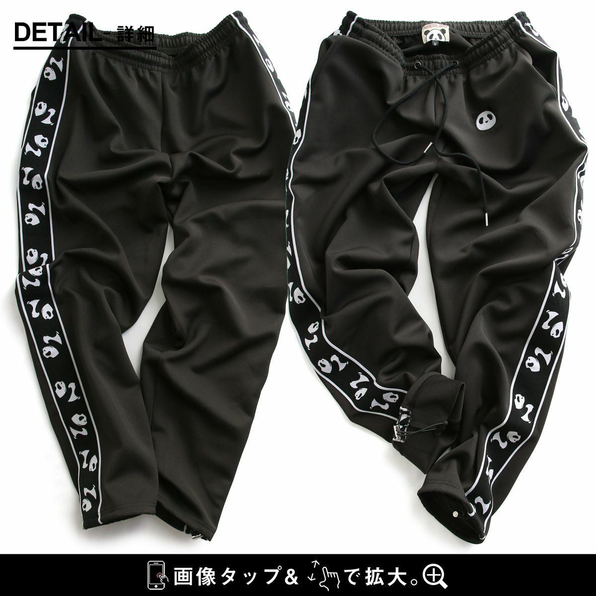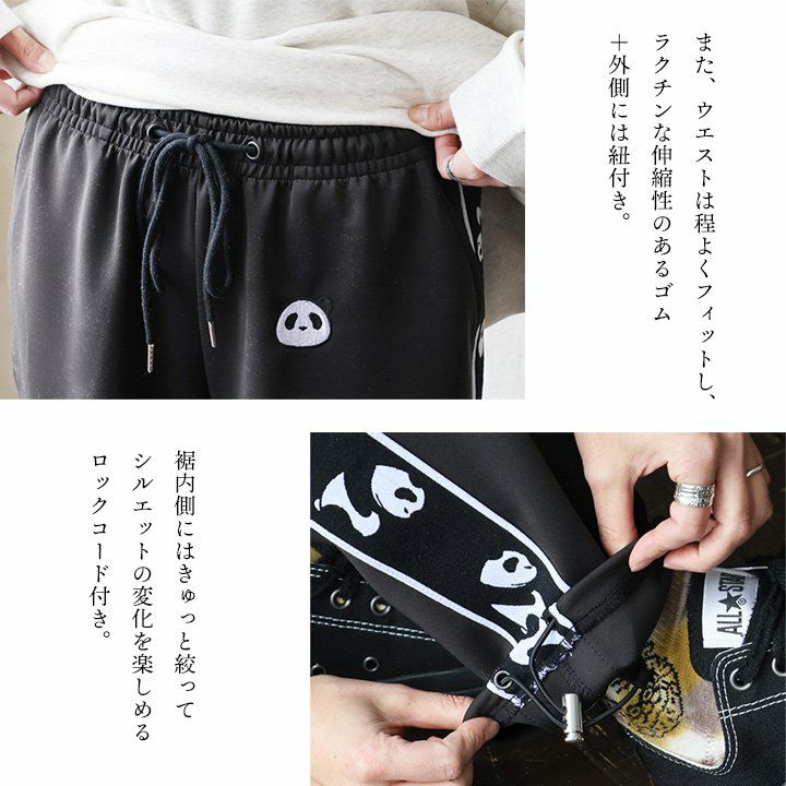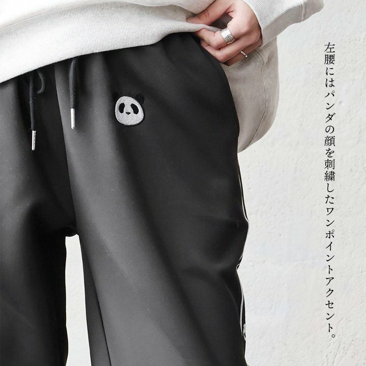 流行りモノも、「パンダ」で癒されちゃいましょ。 PANDIESTAJAPAN パンディエスタジャパン トラックパンツ パンツ ワイド メンズ レディース ライン パンダ 刺繍 熊猫 ポリエステル ストレッチ 動きやすい ウエストゴム ゆったり 大きいサイズ 体型カバー カジュアル パティ