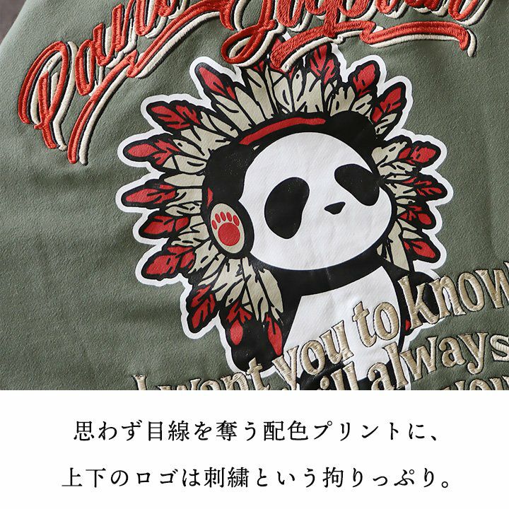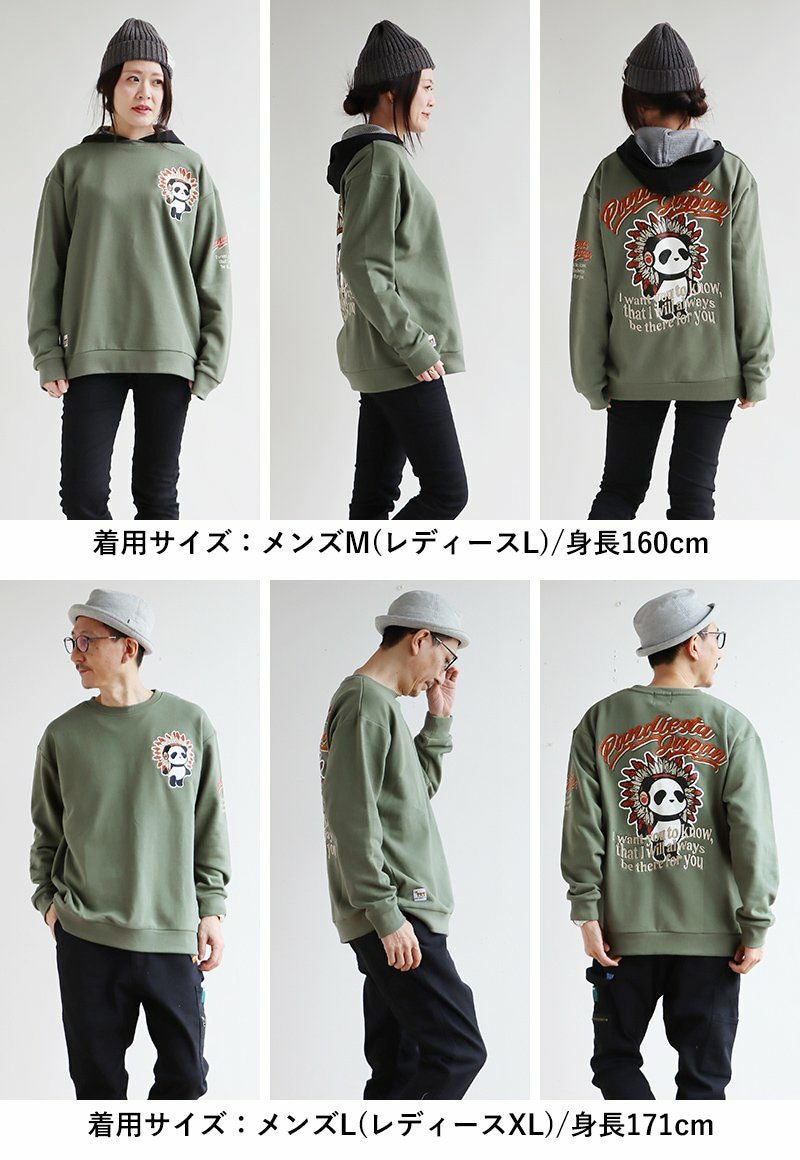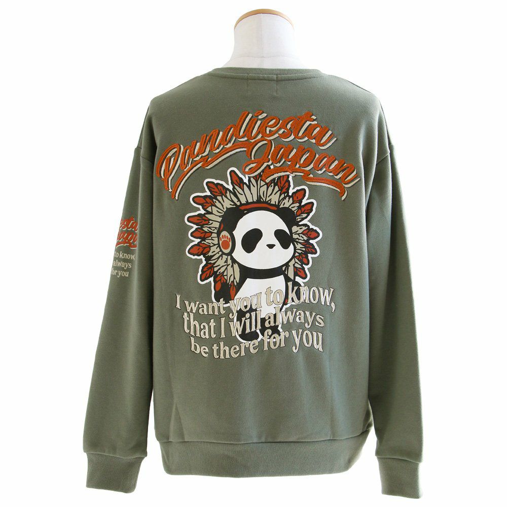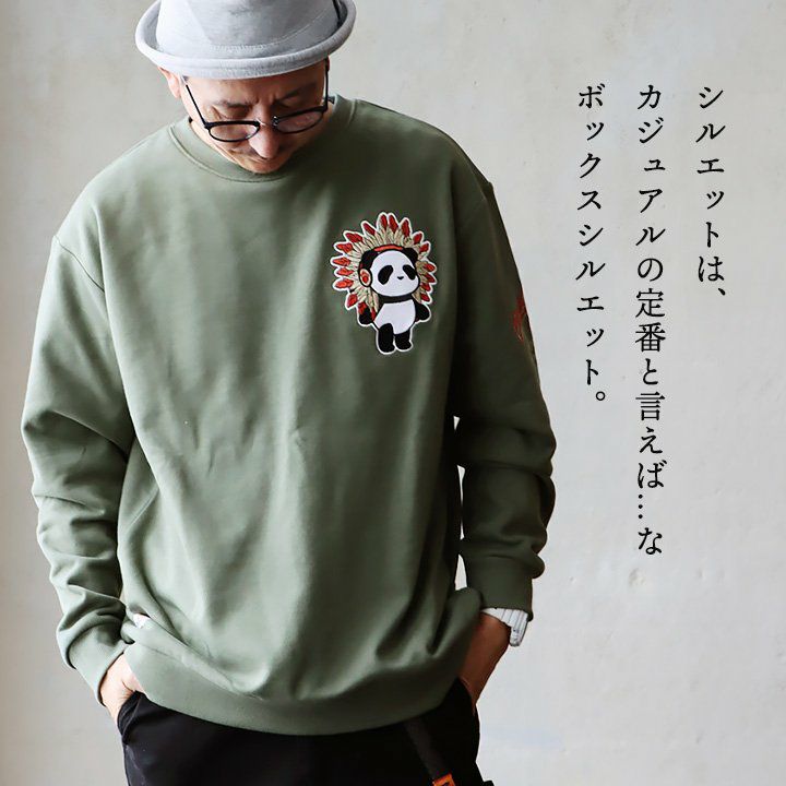 「アメカジ全開」なのに、「パンダ」というギャップ。 PANDIESTAJAPAN パンディエスタジャパン スウェット 長袖 メンズ レディース クルーネック バックプリント 刺繍 パンダ 熊猫 裏毛 コットン ポリエステル ゆったり 大きいサイズ カジュアル 秋 冬 パティ