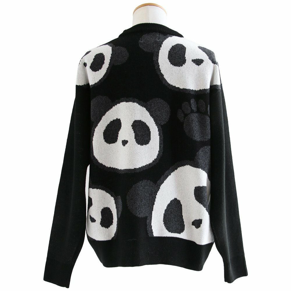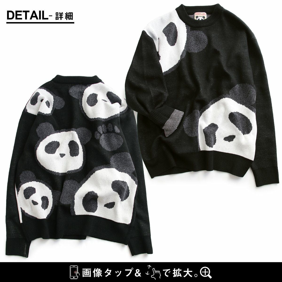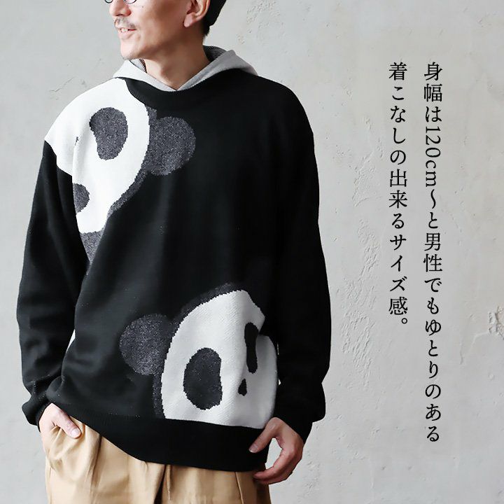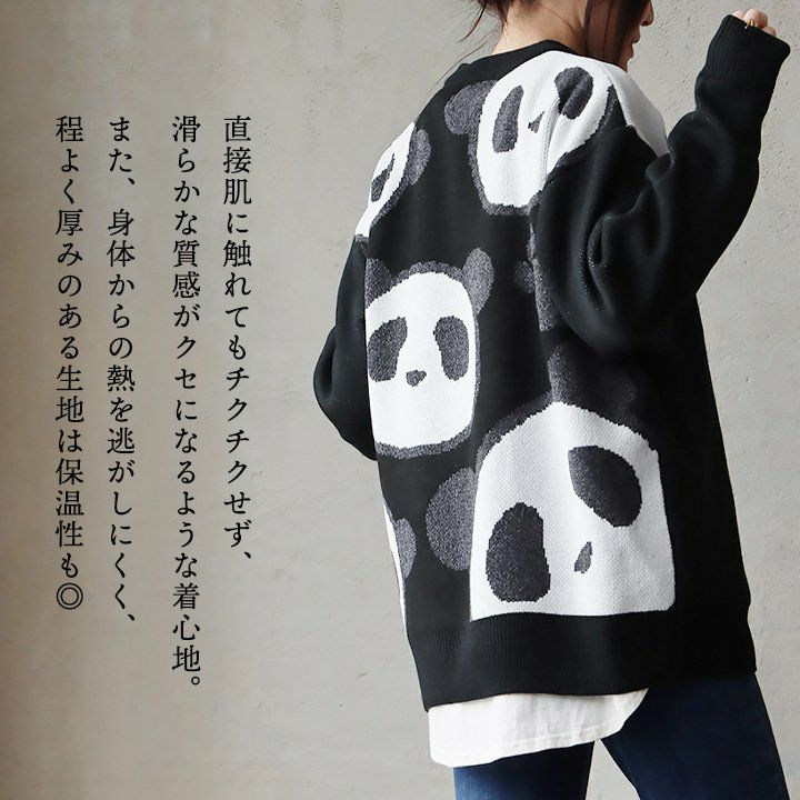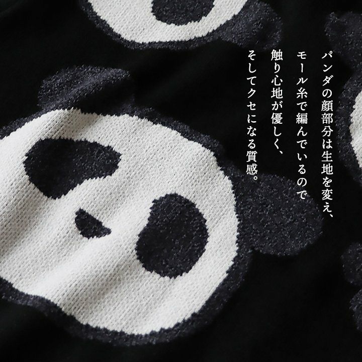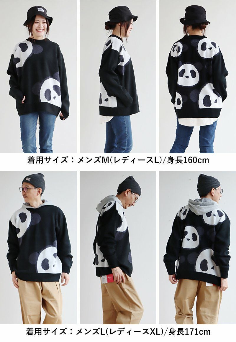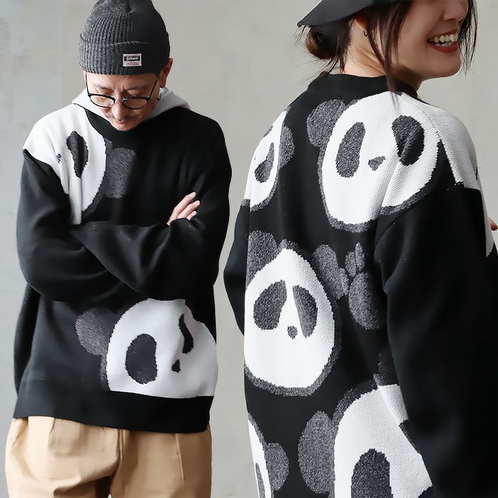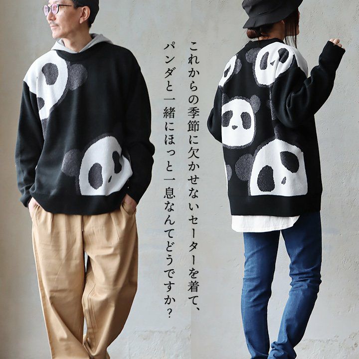 「パンダ」と一緒に、ほっと一息。 PANDIESTAJAPAN パンディエスタジャパン セーター ニット 長袖 メンズ レディース パンダ ジャガード 熊猫 アクリル100 ポリエステル モール 異素材切り替え 伸縮性 保温性 ゆったり 大きいサイズ 体型カバー カジュアル 秋 冬 パティ