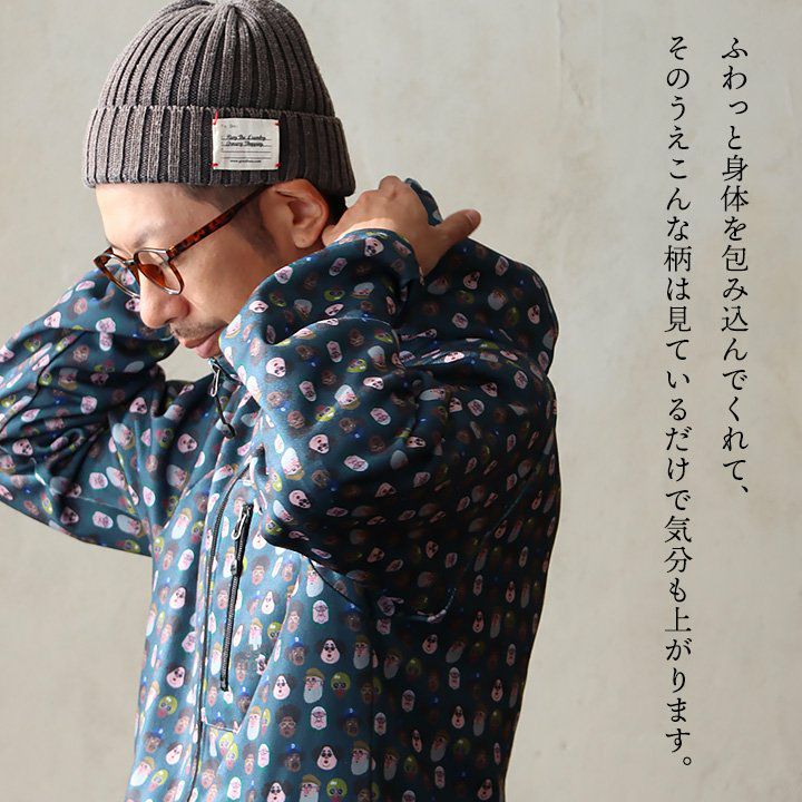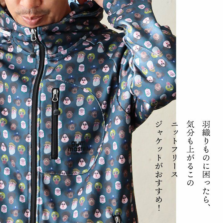 ふわっと暖かく包み込み、気分も上がる。 gym master ジムマスター ジャケット パーカー フード付き メンズ レディース 総柄 ハッピーペイント ニット フリース 伸縮性 厚手 大きいサイズ 秋 冬 カジュアル パティ
