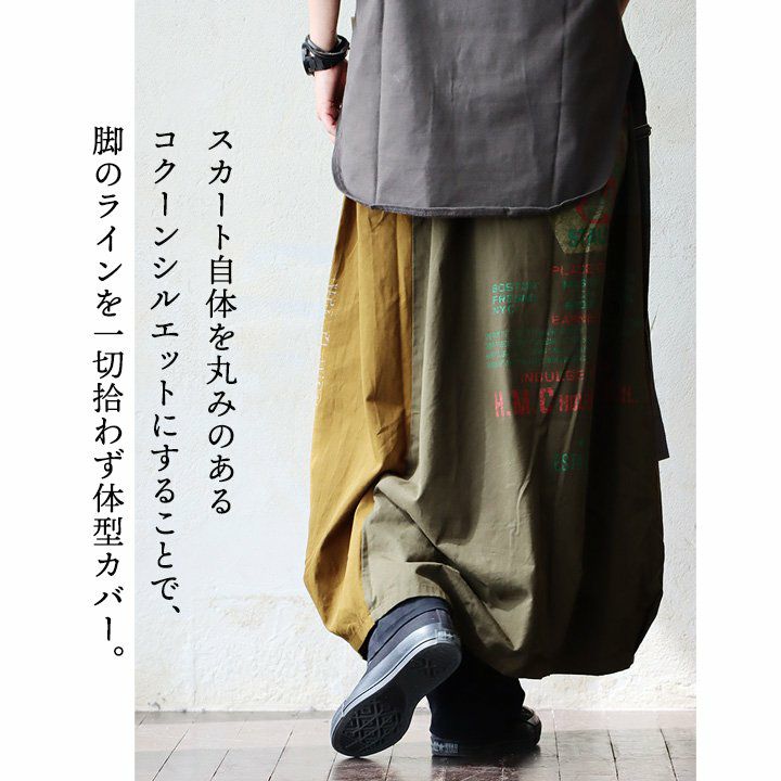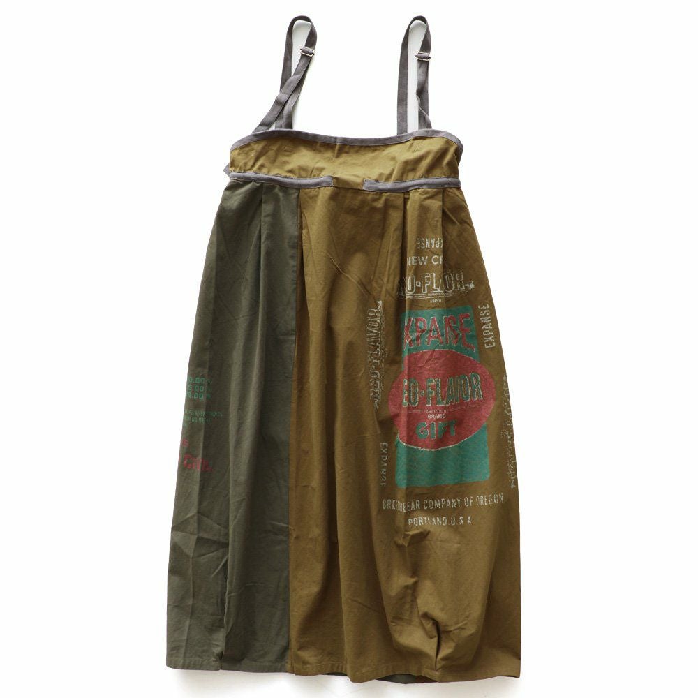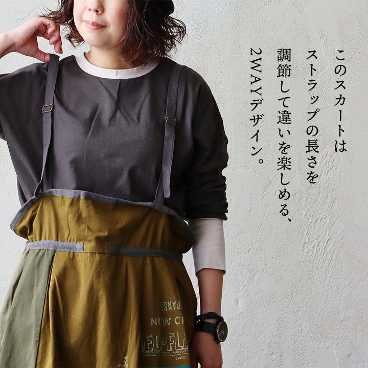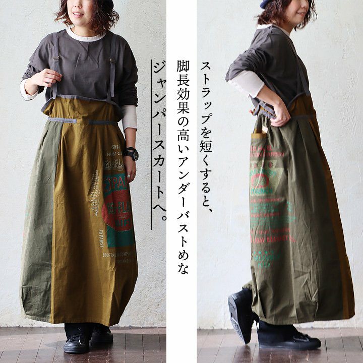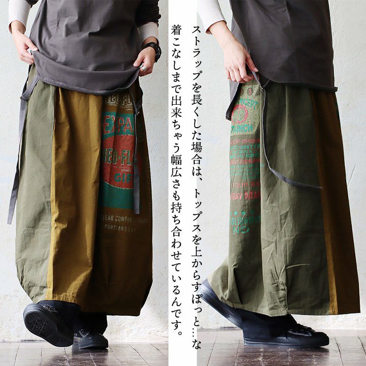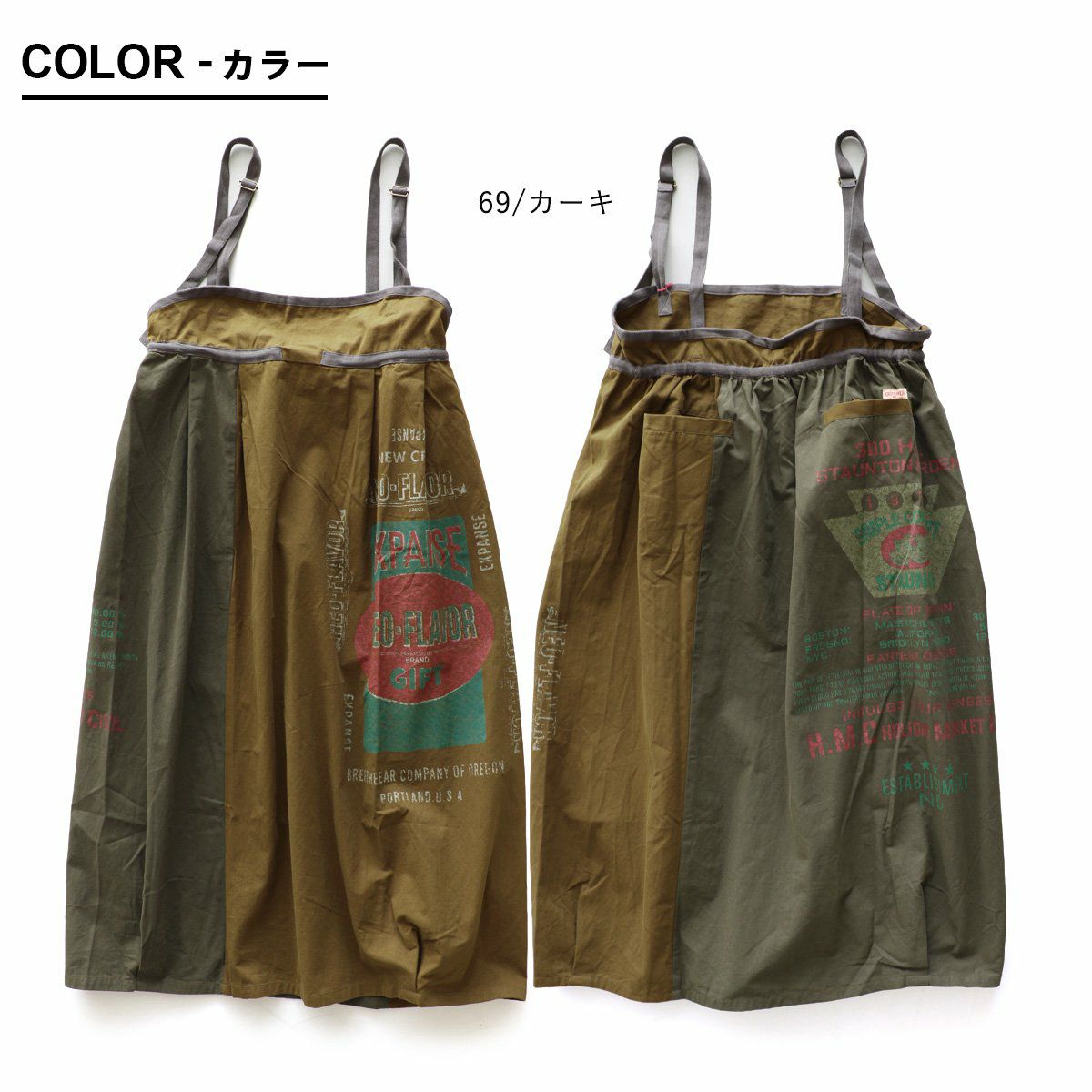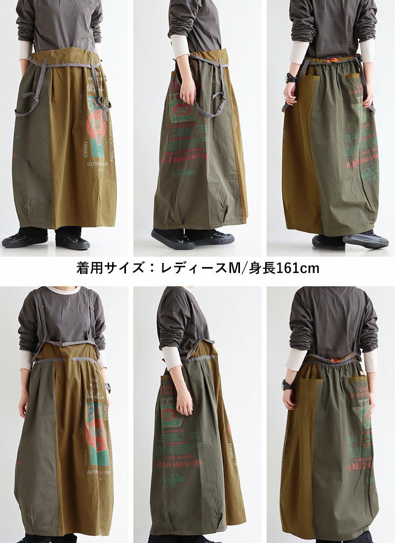 パンツ派には、他にはない個性が光るこんなスカートが無きゃダメ。 KRIFF MAYER クリフメイヤー サロペットスカート サロペット スカート マキシ丈 レディース バルーン サスペンダー付き プリント 切り替え 綿100% コットン ツイル ミリタリー メンズライク パティ