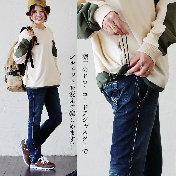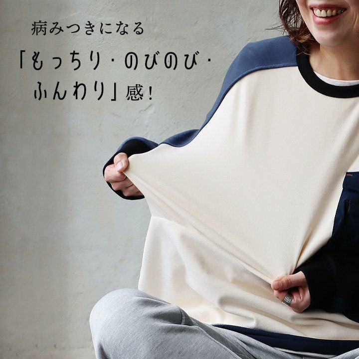 ちょっとした「違い」が、すっきり、綺麗。 Johnbull ジョンブル スウェット プルオーバー 長袖 レディース クルーネック 綿100 コットン 裏毛 無地 厚手 しっかり生地 伸縮性 リブ 体型カバー すっきり 大人カジュアル 春 秋 冬 パティ