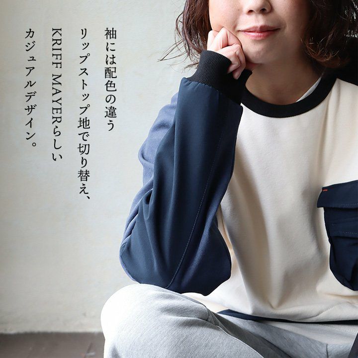 病みつきになる「もっちり・のびのび・ふんわり」感! KRIFF MAYER クリフメイヤー Tシャツ 長袖 プルオーバー メンズ レディース 胸 ポケット ポケT 配色 パイピング 起毛 もっちり 伸縮性 軽い 暖かい ストレッチ ゆったり 大きいサイズ カジュアル 秋 冬 パティ
