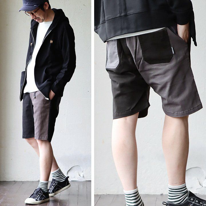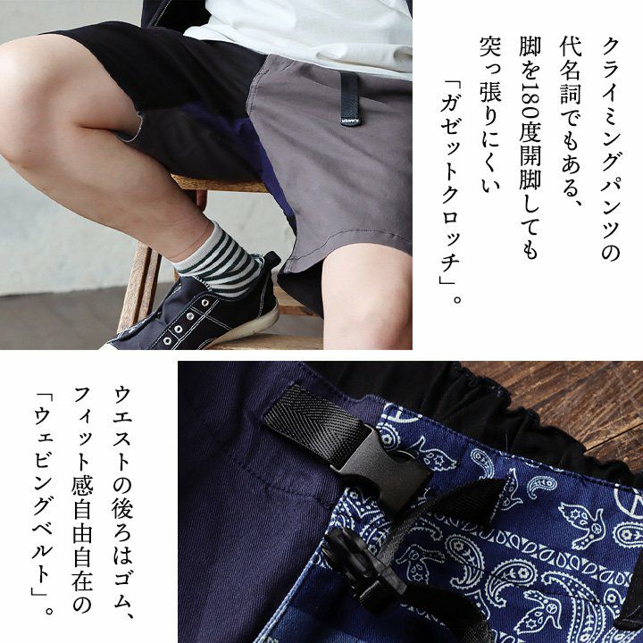 見る角度で変わる表情。タフに動けるクライミングショーツ。 KRIFF MAYER クリフメイヤー ショートパンツ クライミングショーツ パンツ メンズ レディース 配色 ストレッチ コットン ウエストゴム ウェビングベルト ガゼットクロッチ ゆったり 大きいサイズ カジュアル アウトドア 夏 パティ
