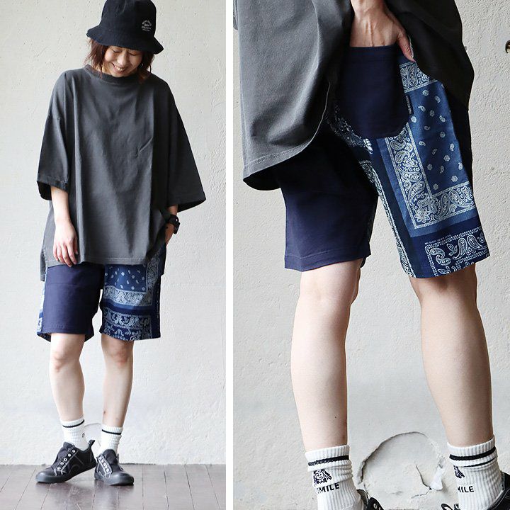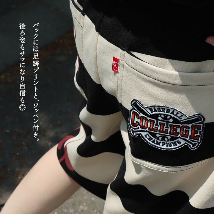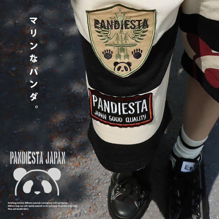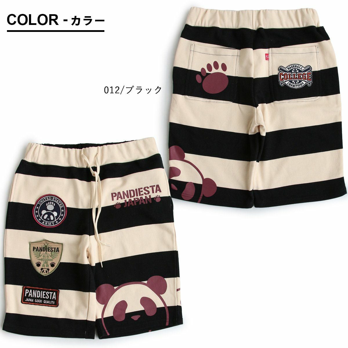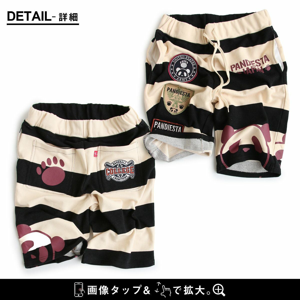 マリンなパンダ。 PANDIESTAJAPAN パンディエスタジャパン ショートパンツ パンツ ハーフパンツ メンズ レディース パンダ 熊猫 ボーダー 配色切り替え ワッペン プリント 綿100 裏毛 コットン 伸縮性 ウエストゴム ゆったり 大きいサイズ カジュアル 夏 夏服 パティ