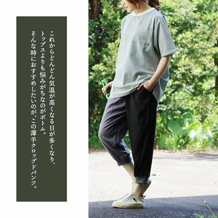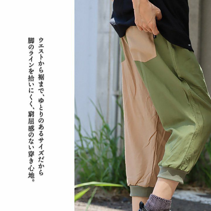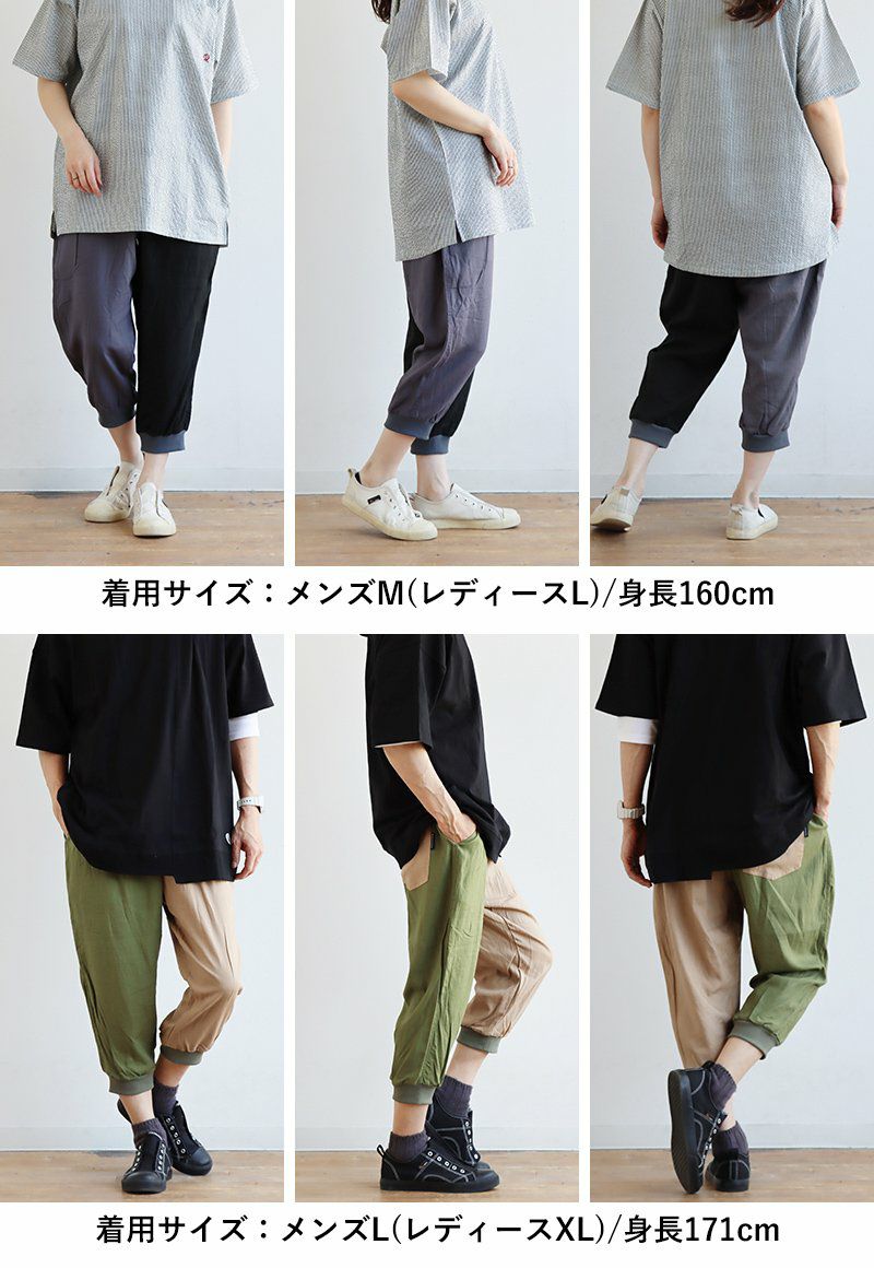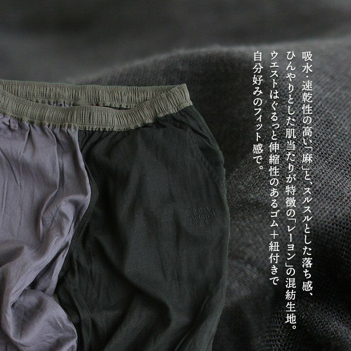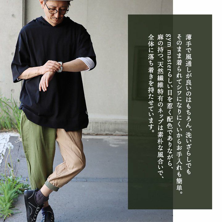 気温が高い日こそ穿いてほしい、この「涼しさ」「面白さ」! gym master ジムマスター パンツ クロップドパンツ メンズ レディース 無地 配色 クレイジー 麻 レーヨン 薄手 軽い 涼しい 通気性 ウエストゴム 紐付き 裾リブ ゆったり 体型カバー 大きいサイズ カジュアル アウトドア 夏 パティ
