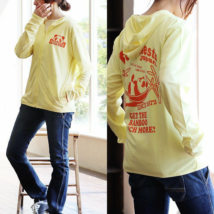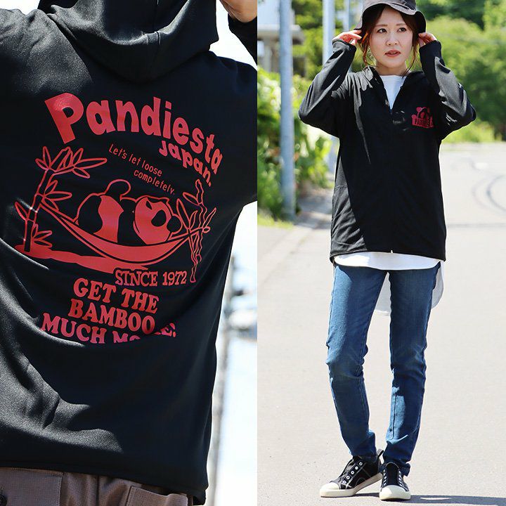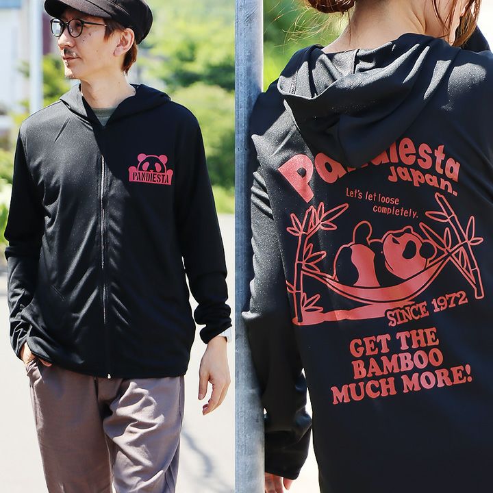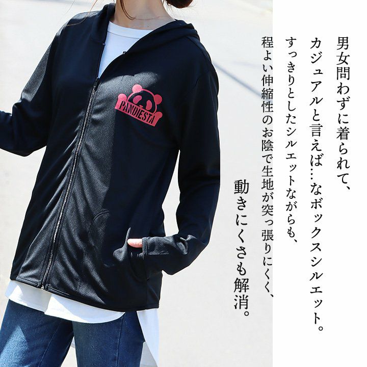 涼しく、ドライ。背中にはパンダ。 PANDIESTAJAPAN パンディエスタジャパン パーカー ジップパーカー 長袖 メンズ レディース 無地 バックプリント パンダ ドライメッシュ 吸水速乾 ポリステル100% 薄手 涼しい 通気性 紫外線対策 カジュアル 夏 夏服 パティ