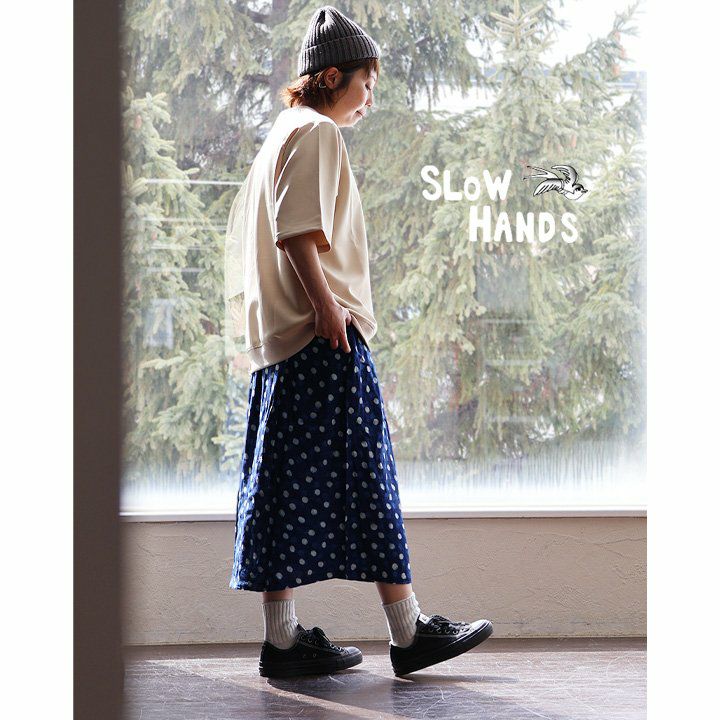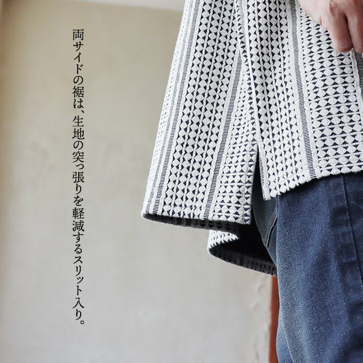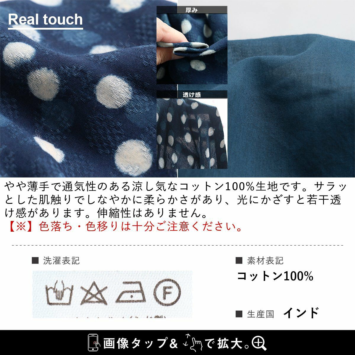 奥行と存在感ある「ドット」。 SLOW HANDS スローハンズ シャツ ブラウス プルオーバー 長袖 レディース バンドカラー ドット柄 ジャガード プリント インド 綿100% コットン 涼しい 薄手 通気性 袖ゴム 大きいサイズ ゆったり 体型カバー カジュアル 夏 夏服 パティ