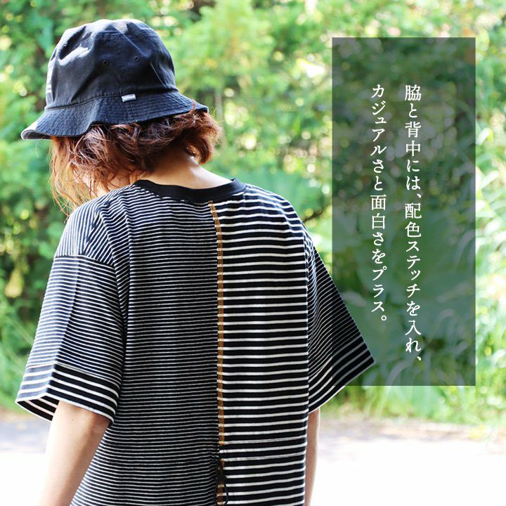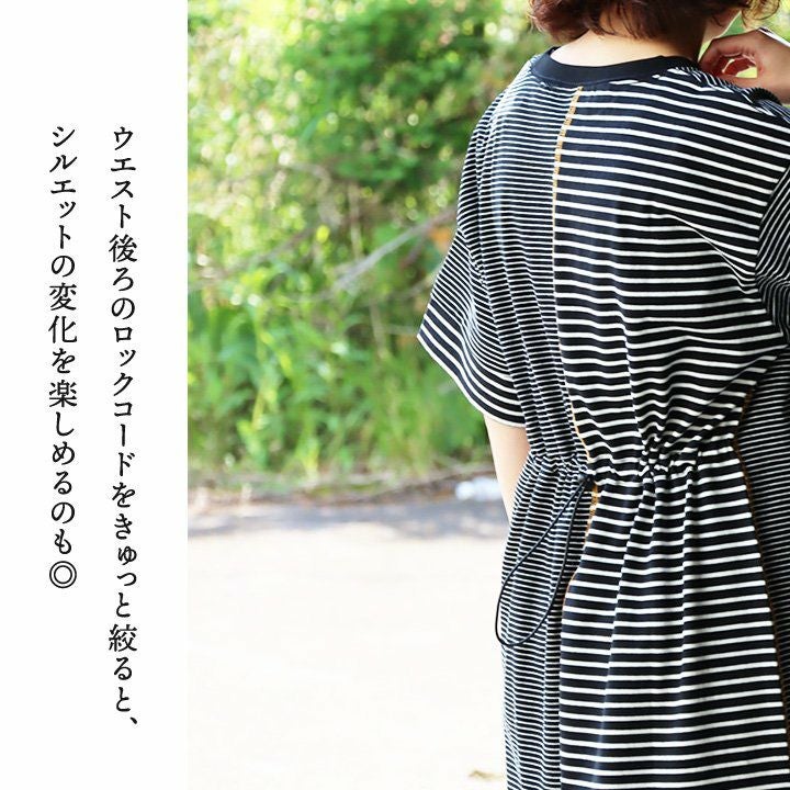 「ちょっとの違い」が『大きな違い』。 gym master ジムマスター ワンピース ワンピ 半袖 レディース クルーネック ボーダー ステッチ 配色切り替え 綿100% コットン 天竺 伸縮性 ゆったり 大きいサイズ 体型カバー カジュアル 夏 夏服 パティ