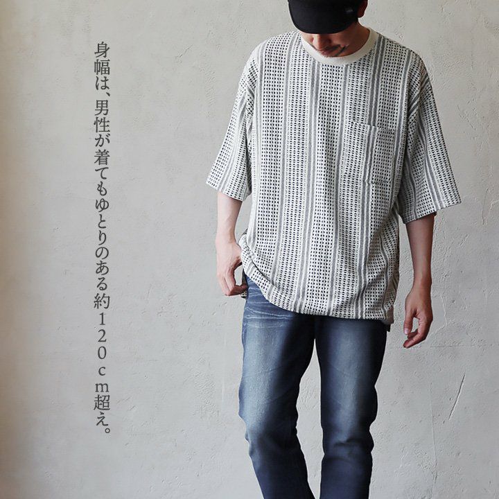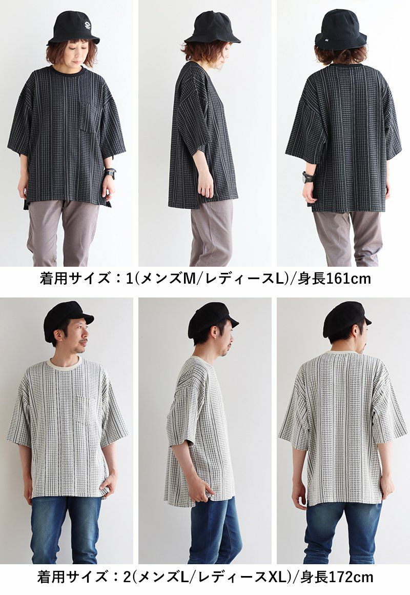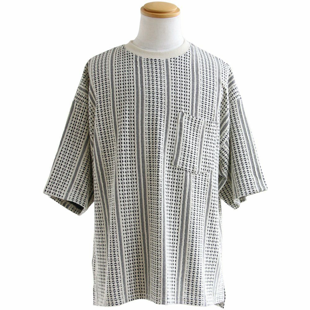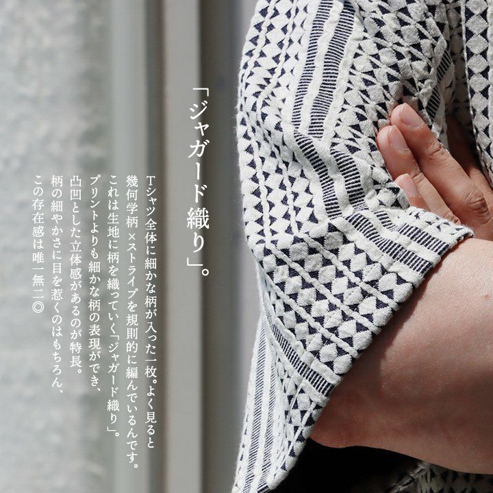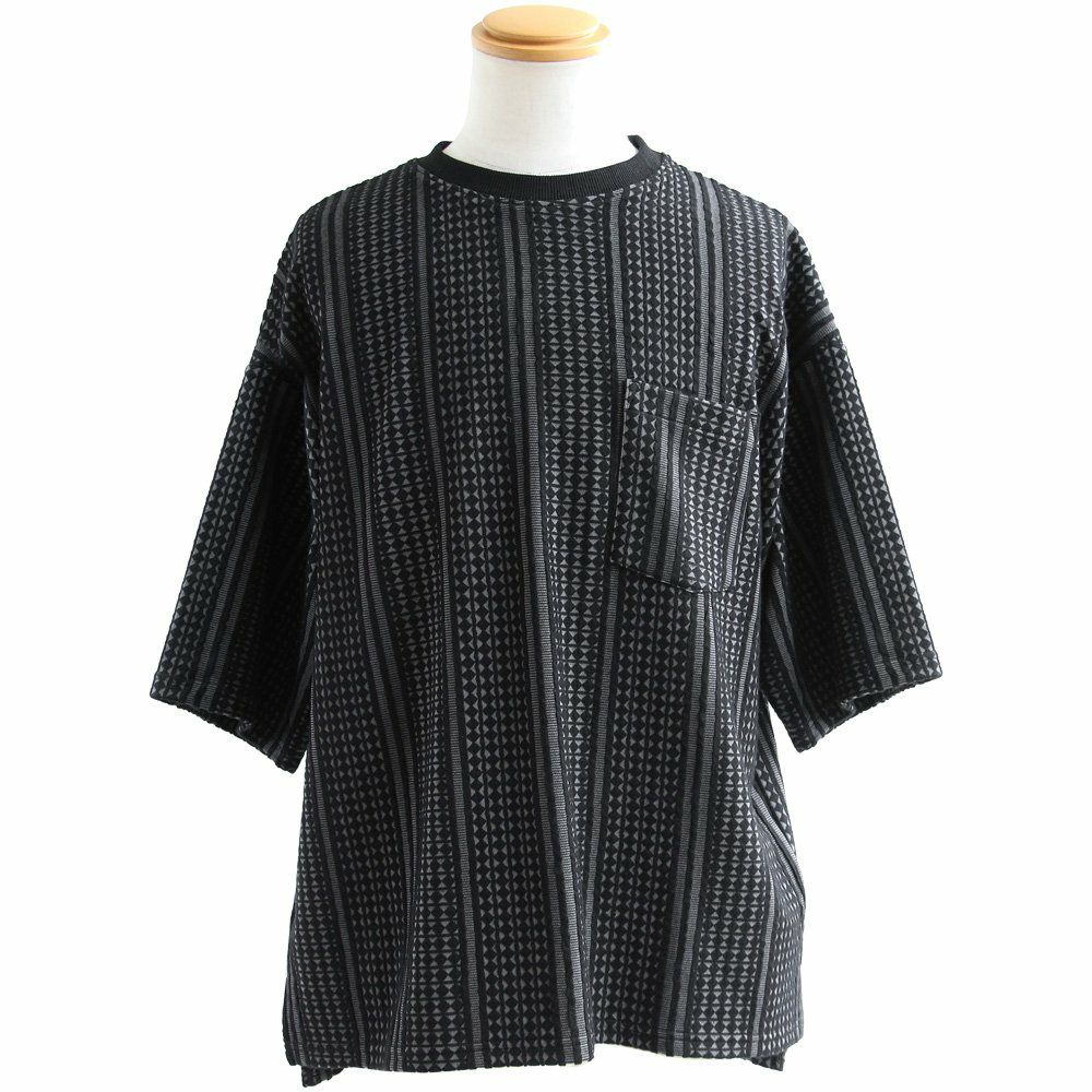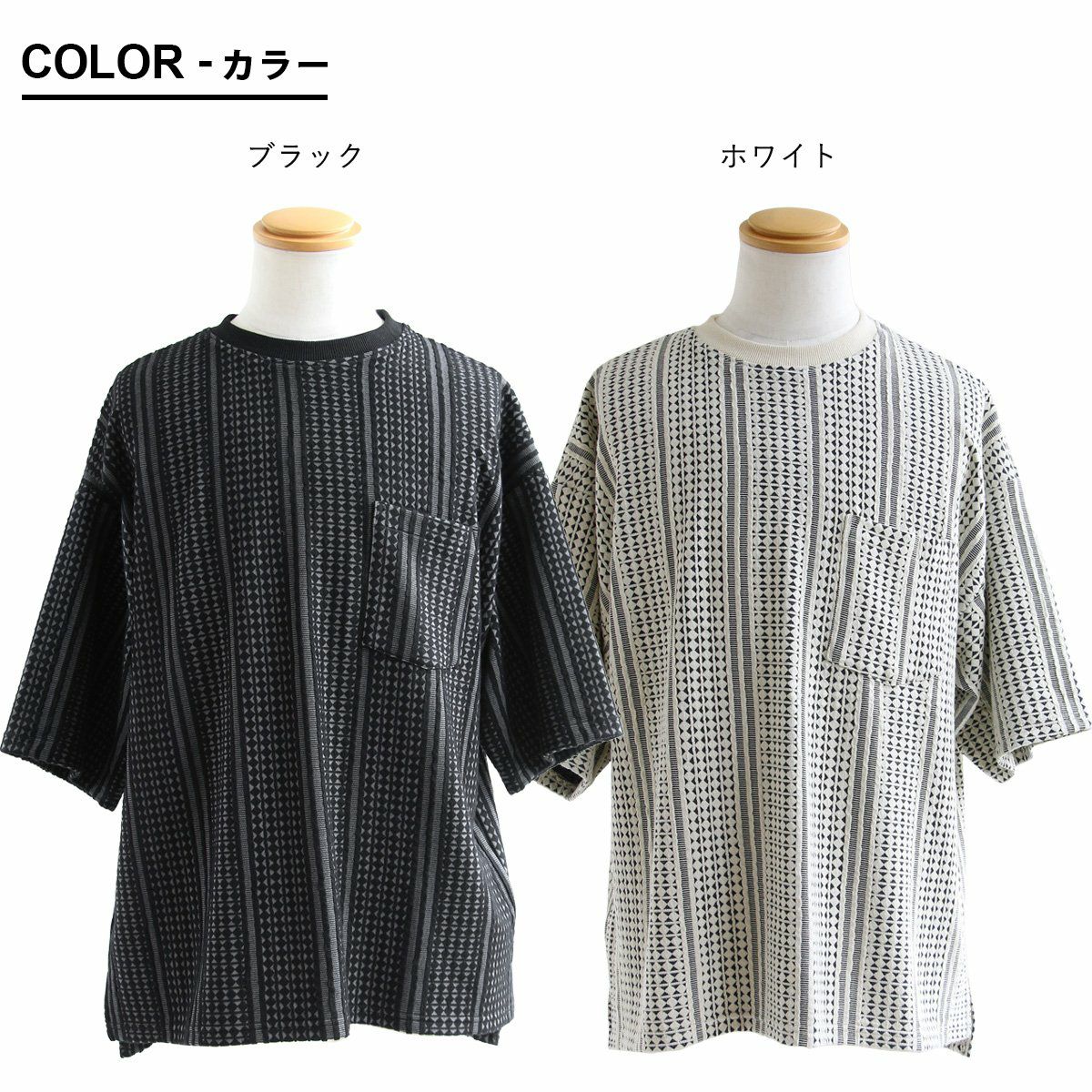 「規則性」で溢れ出る「存在感」。 Tシャツ 5分袖 メンズ レディース クルーネック 幾何学柄 ストライプ ジャガード シアー 軽い 涼しい ストレッチ 伸縮性 大きいサイズ 体型カバー カジュアル 夏 夏服 パティ