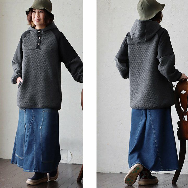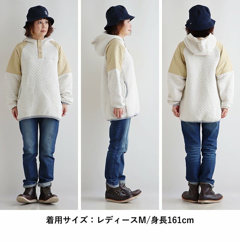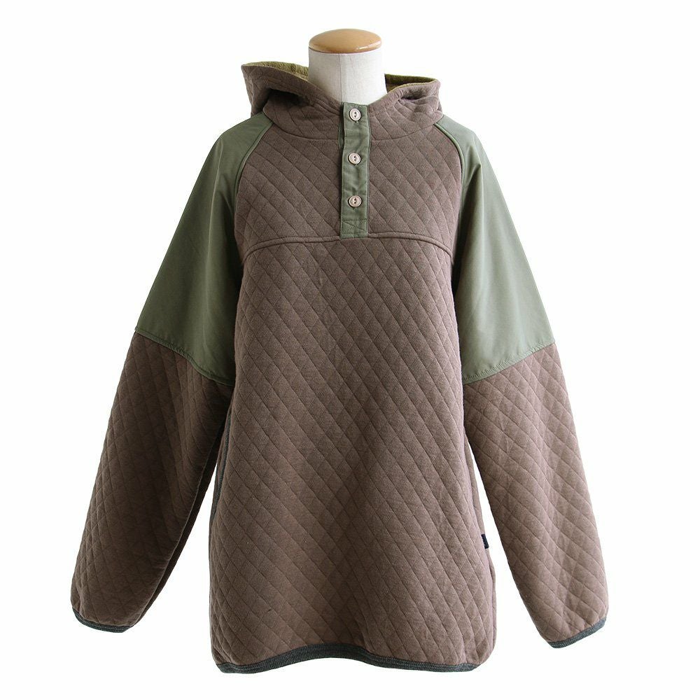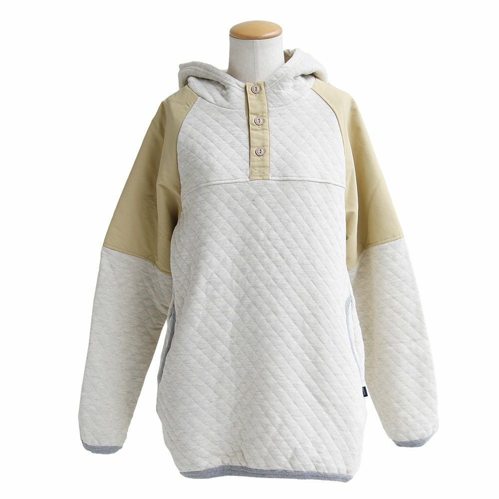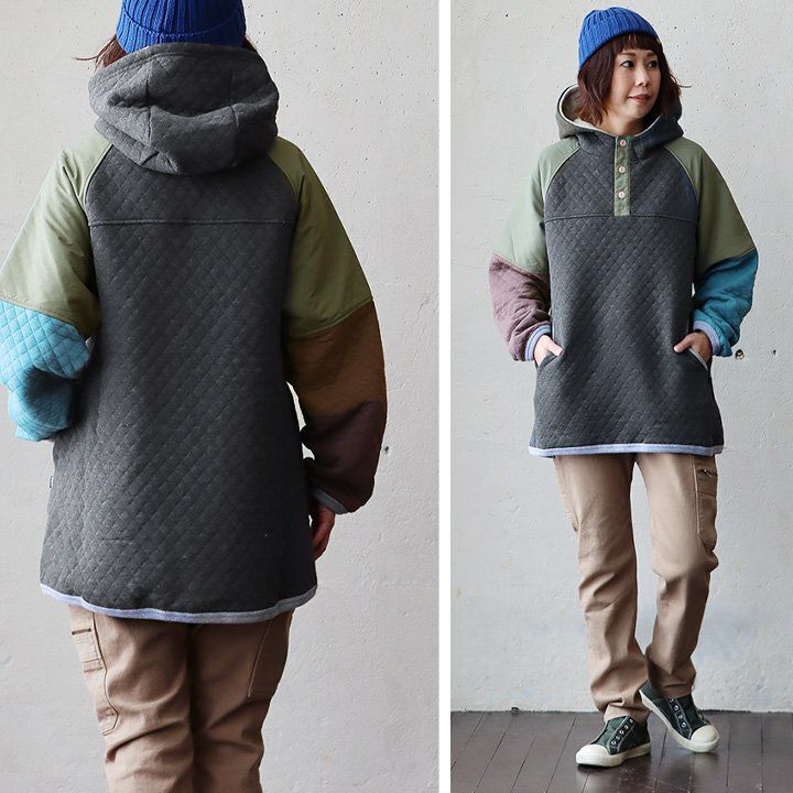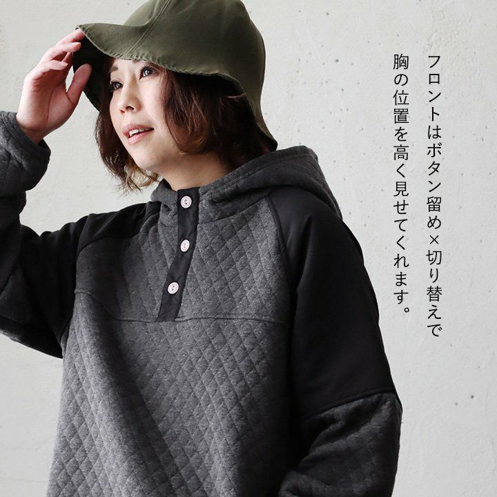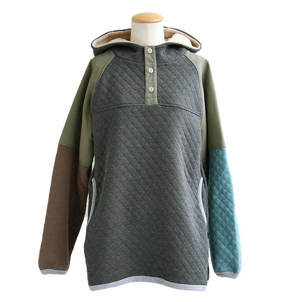 アウトドアにも、インドアにも、両方にマッチ。 KRIFF MAYER クリフメイヤー パーカー チュニック レディース お尻隠れる 異素材切り替え コットンキルト ナイロン 配色 フリース 暖かい 軽い ゆったり 体型カバー 秋 冬 カジュアル アウトドア お家時間 PATY